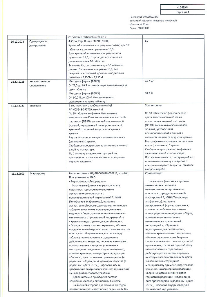 Пациенты должны быть предупреждены о том, что препарат Вемлиди® не предотвращает риск передачи ВГВ другим лицам половым путем или через кровь. Следует продолжать придерживаться соответствующих мер предосторожности.