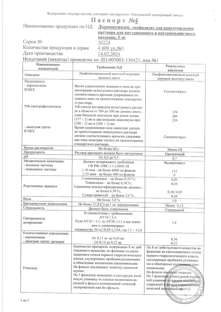 - гиперчувствительность к лорноксикаму или любому из вспомогательных веществ;