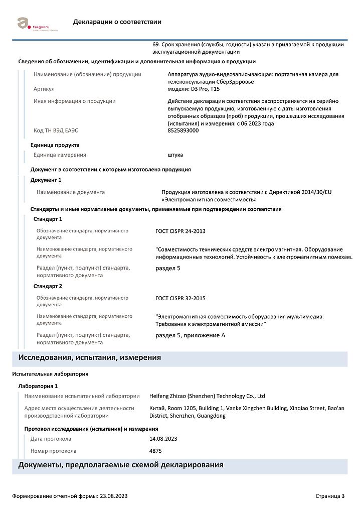 Документы СберЗдоровье Умная камера здоровья