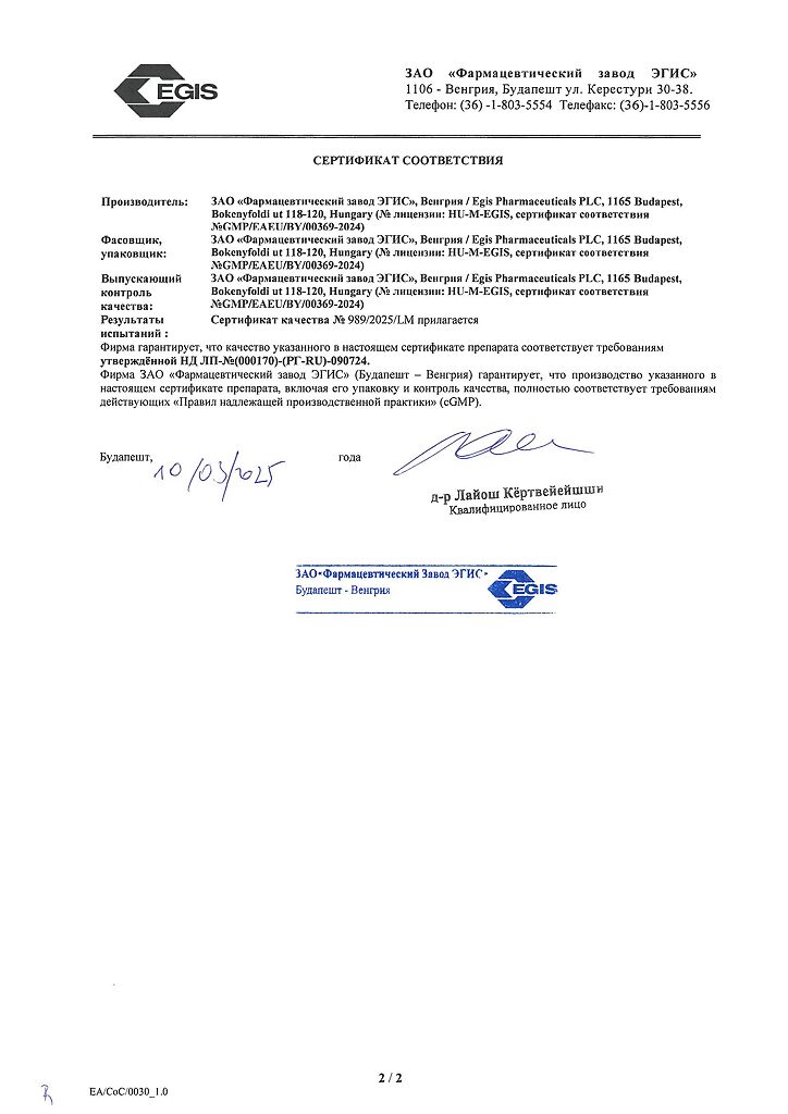 Производитель: ЭГИС, Венгрия