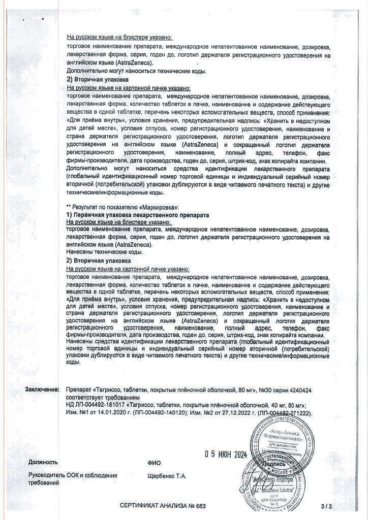 • Информацию об акциях и скидках на Тагриссо уточняйте на нашем сайте.