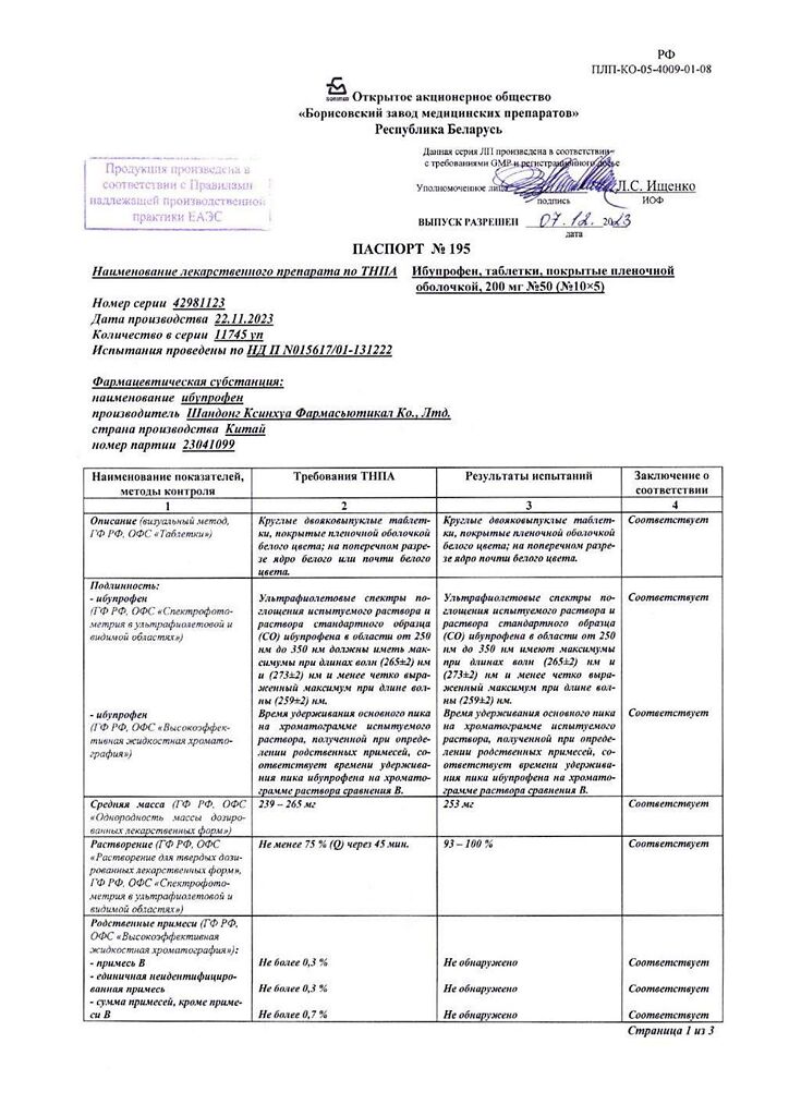 Производитель: Борисовский завод медицинских препаратов, Беларусь