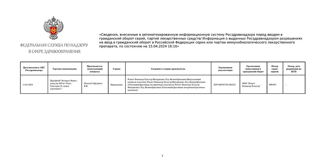 Производитель: Патеон Софтджелс Б.В., Нидерланды