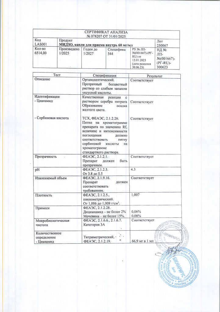 Документы Мидзо капли для приема внутрь 60 мг/мл 15 мл 4 шт