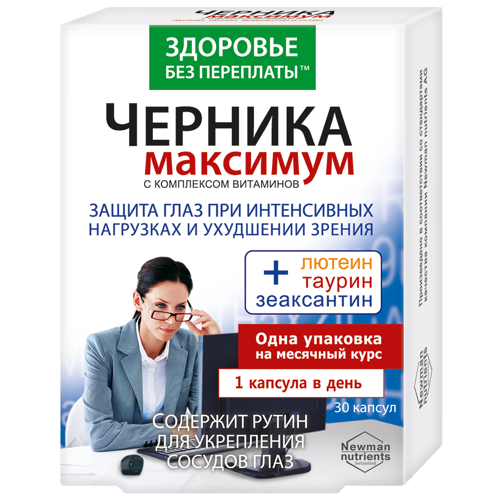 • 📒 Подробная инструкция по применению Черника Максимум с комплексом витаминов, лютеином и таурином капсулы массой 775 мг 30 шт