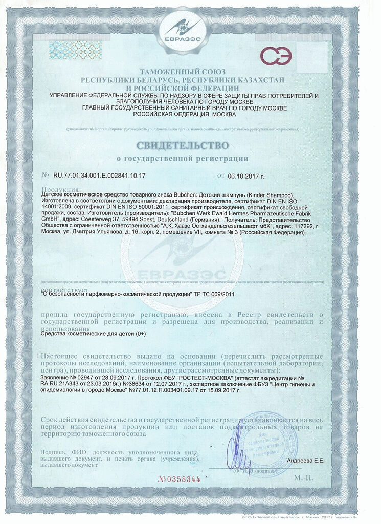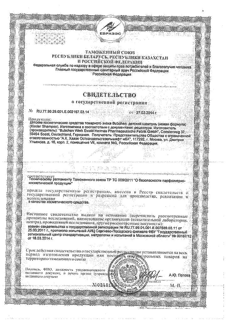 Производитель: Бюбхен-Верк Эвальд Гермес Фармацойтише, Германия