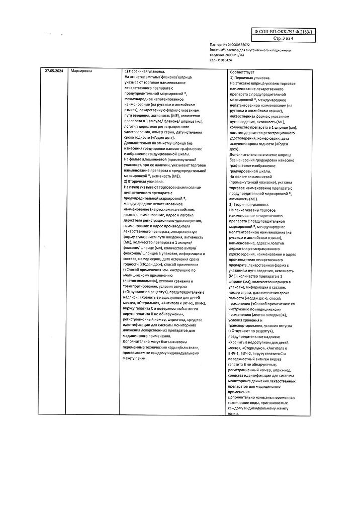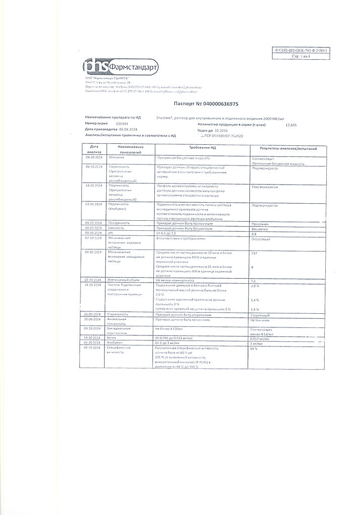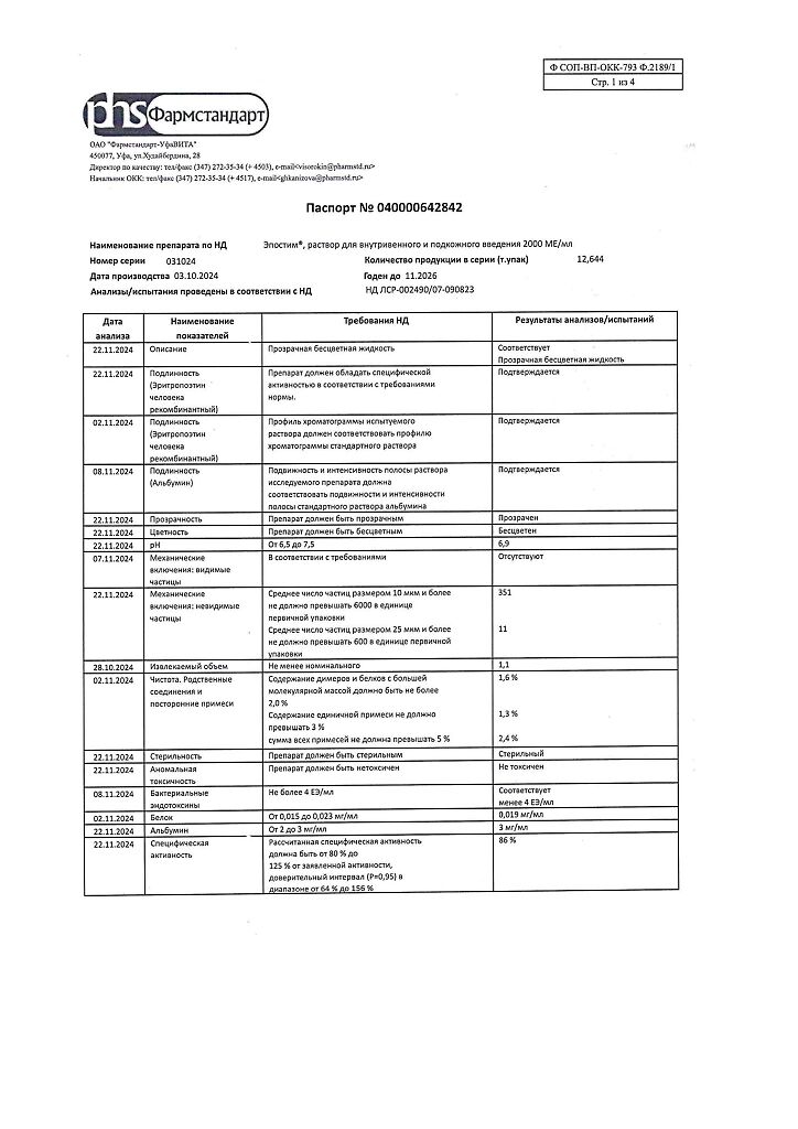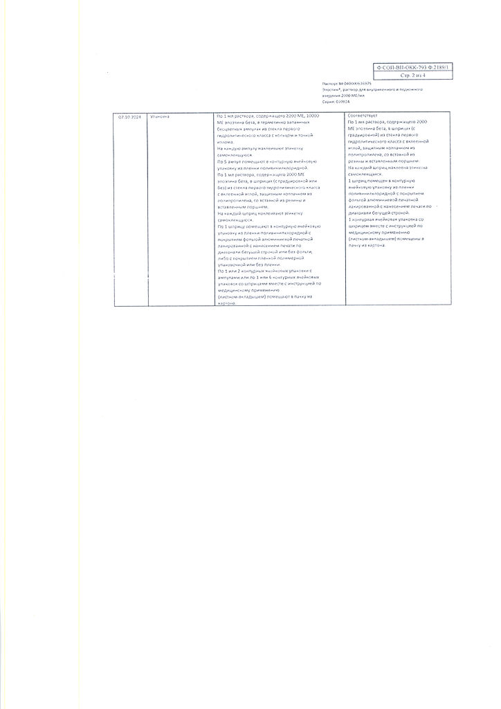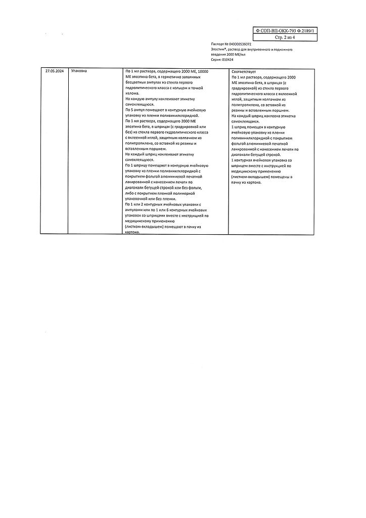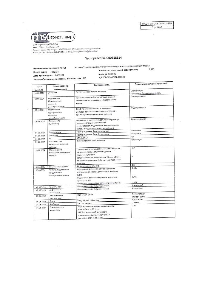 действующее вещество: рекомбинантный эритропоэтин человека 1000 МЕ/мл, 2000 МЕ/мл, 4000 МЕ/мл, 5000 МЕ/мл или 10000 МЕ/мл,