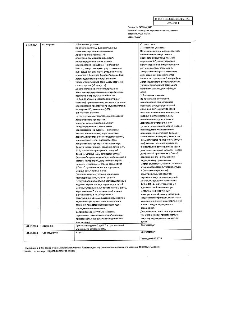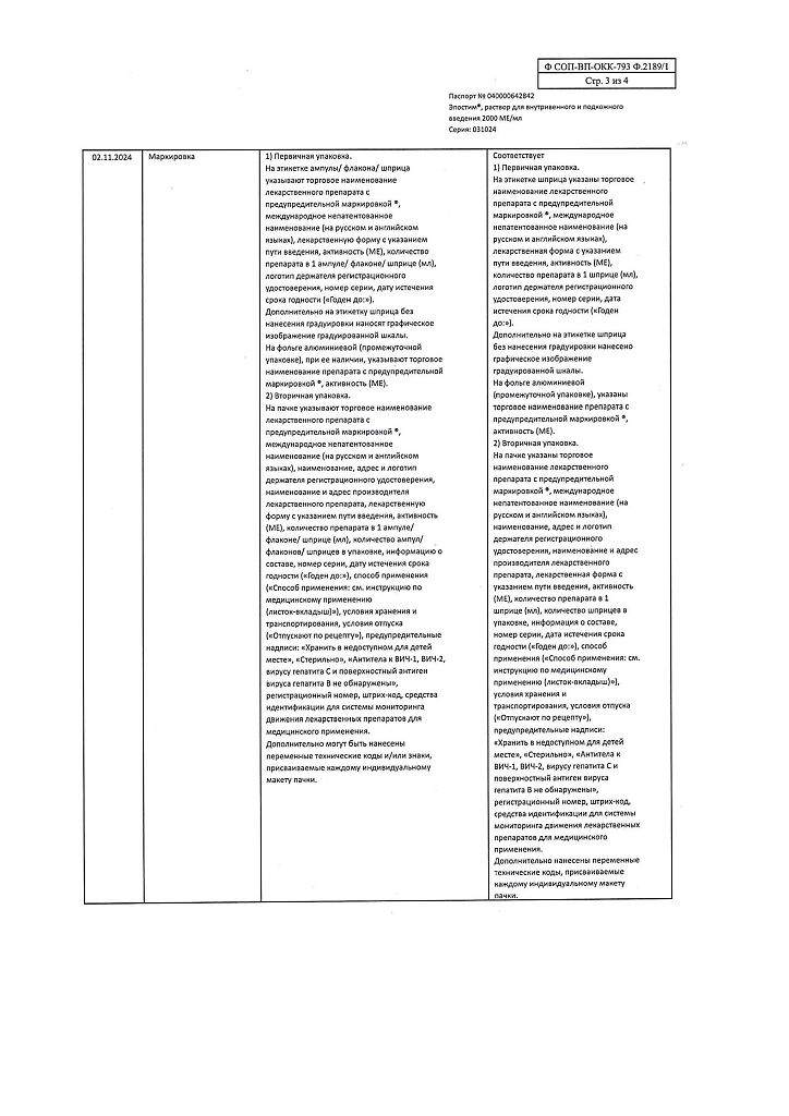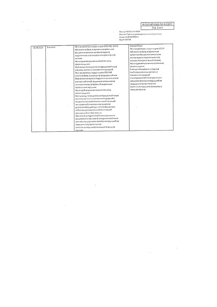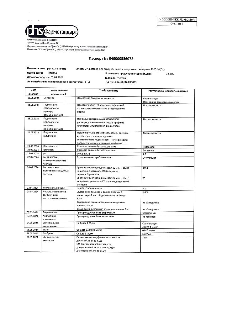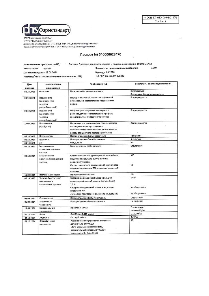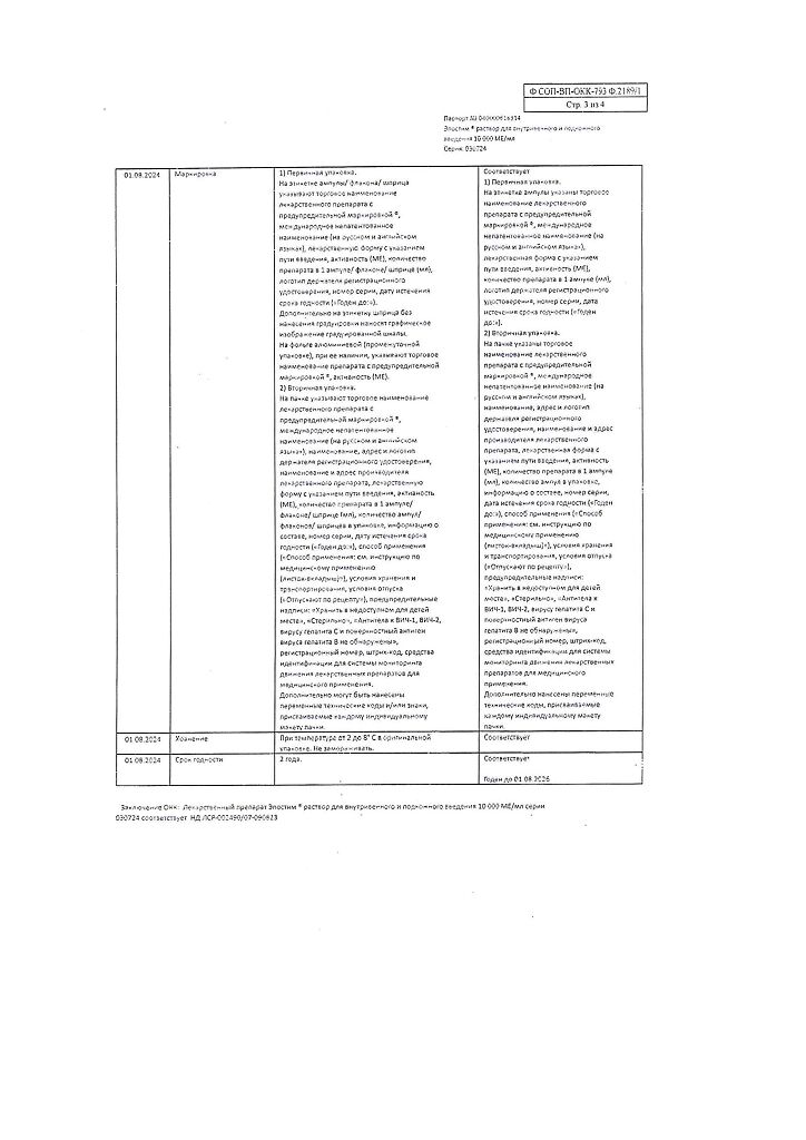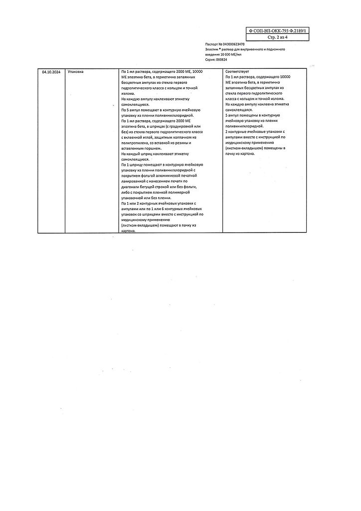 действующее вещество: рекомбинантный эритропоэтин человека 1000 МЕ/мл, 2000 МЕ/мл, 4000 МЕ/мл, 5000 МЕ/мл или 10000 МЕ/мл,