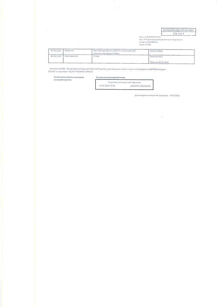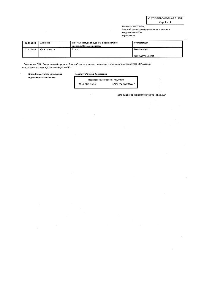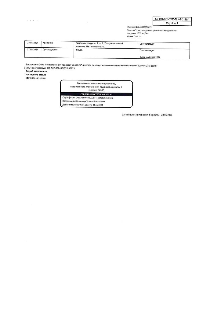 Если уровень гемоглобина в предоперационный период ≥150 г/л, применение Эпостима следует прекратить.