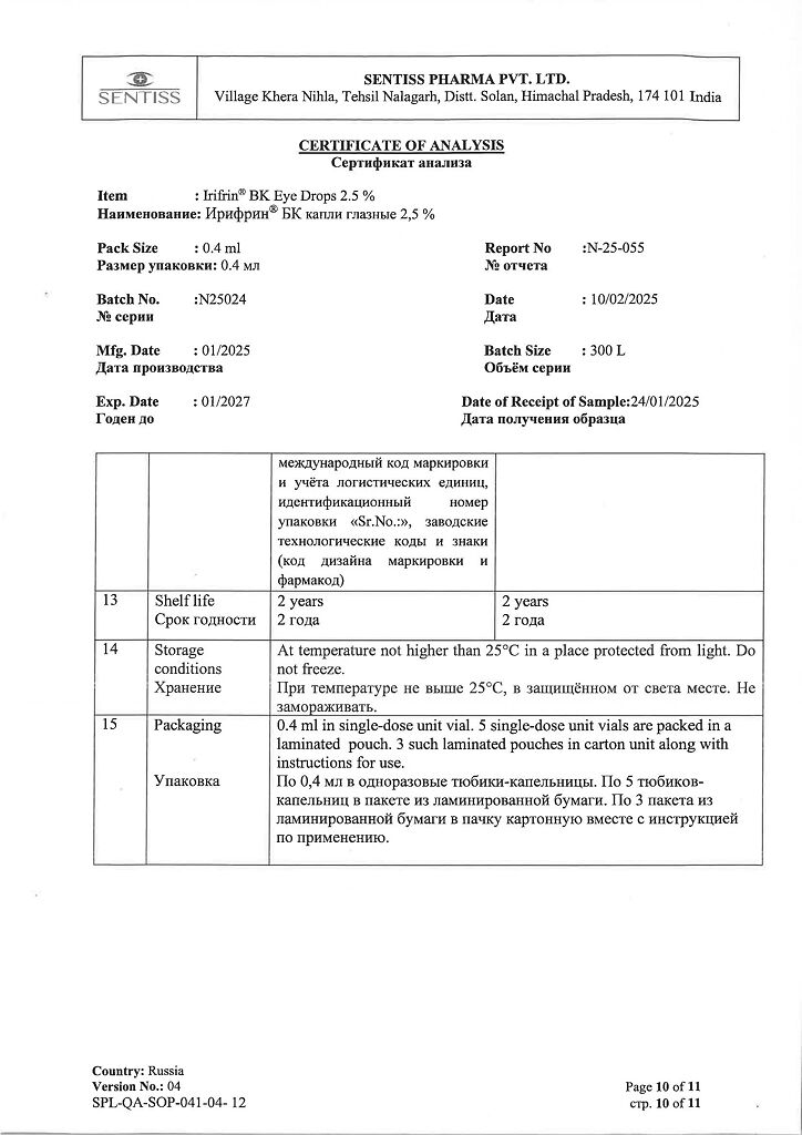 • Срок годности Ирифрин БК - 2 года