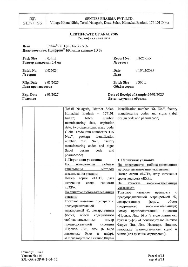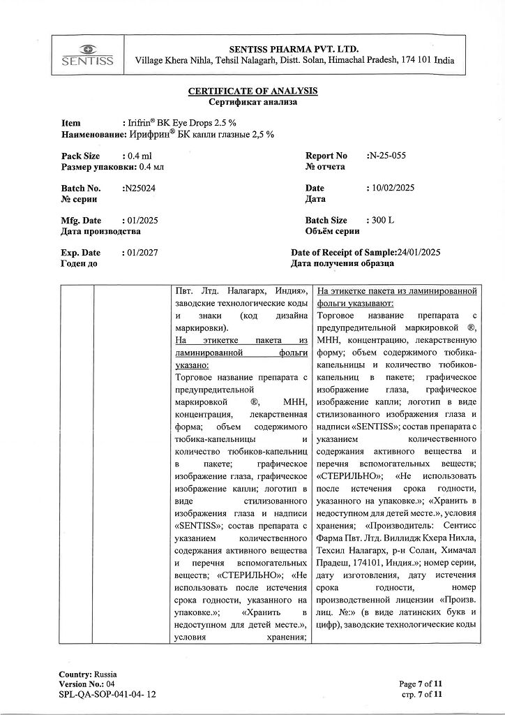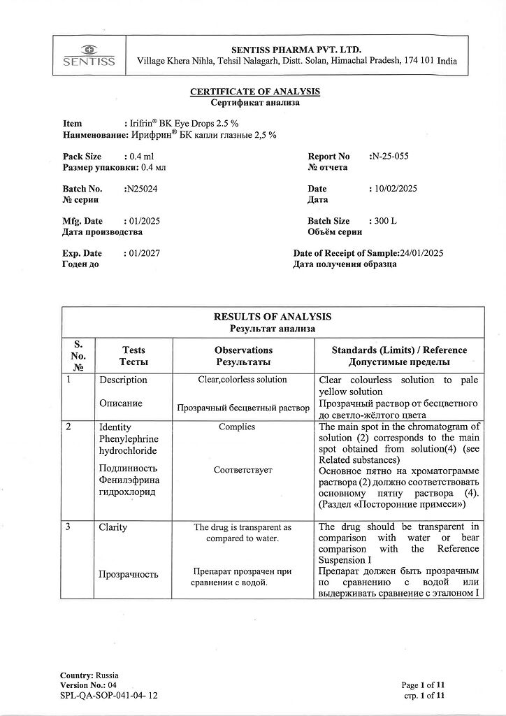 Фото Ирифрин БК