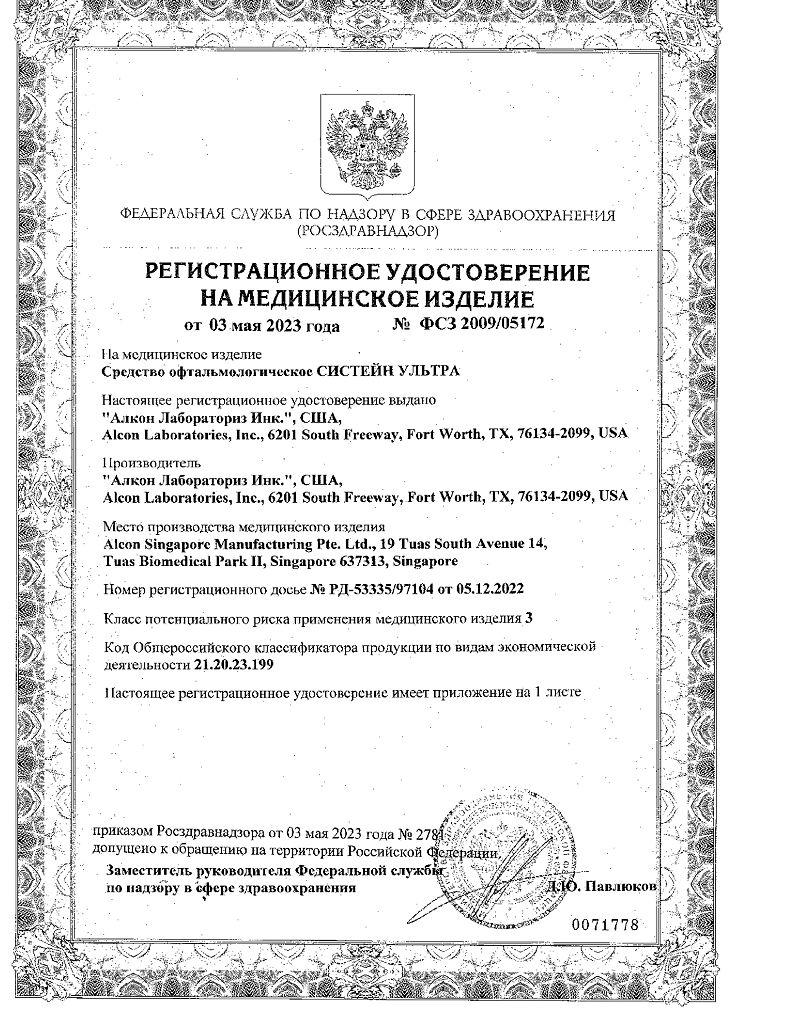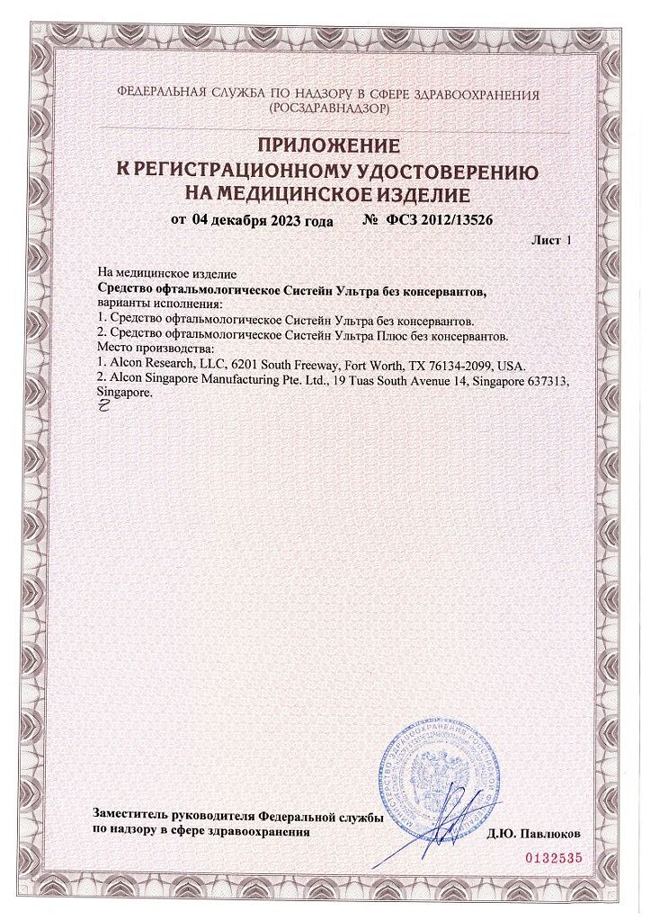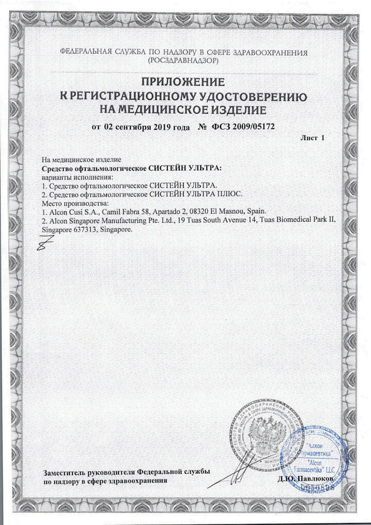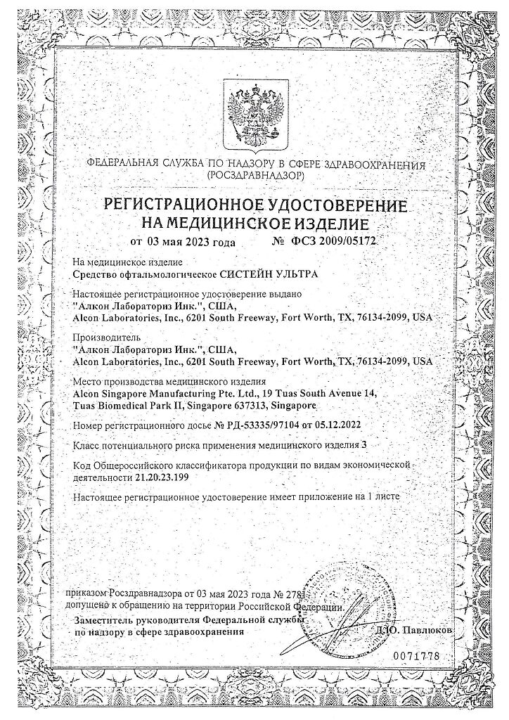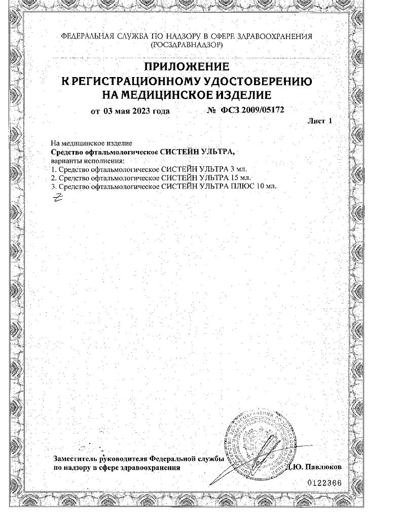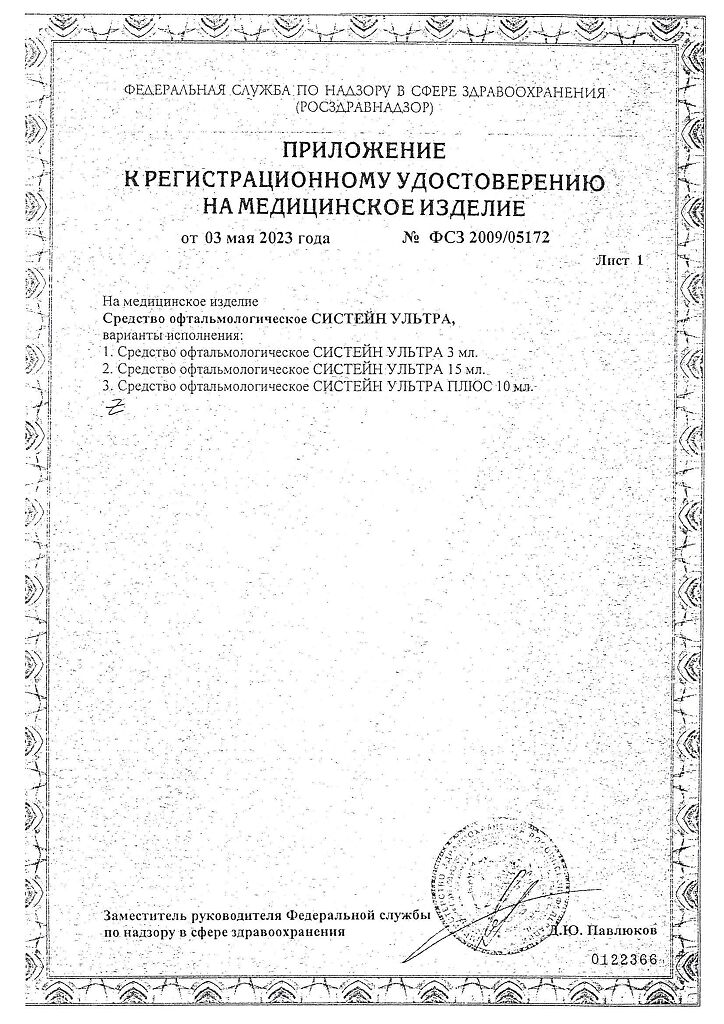 • Срок годности Систейн ультра - см. на упаковке. После первого вскрытия флакона - 6 месяцев.