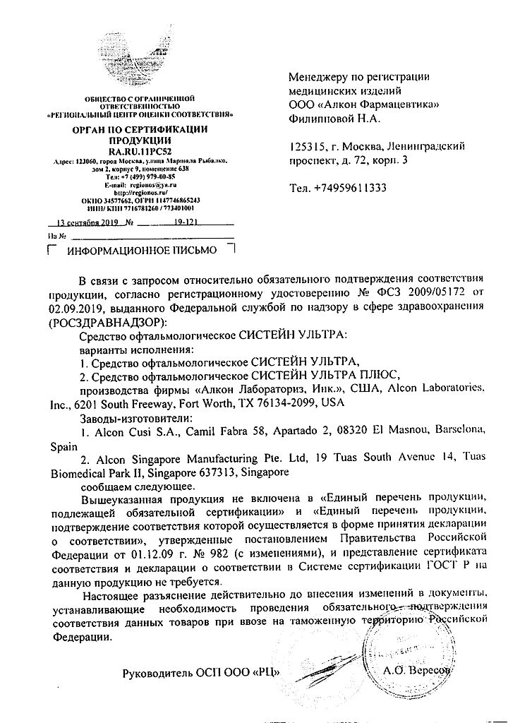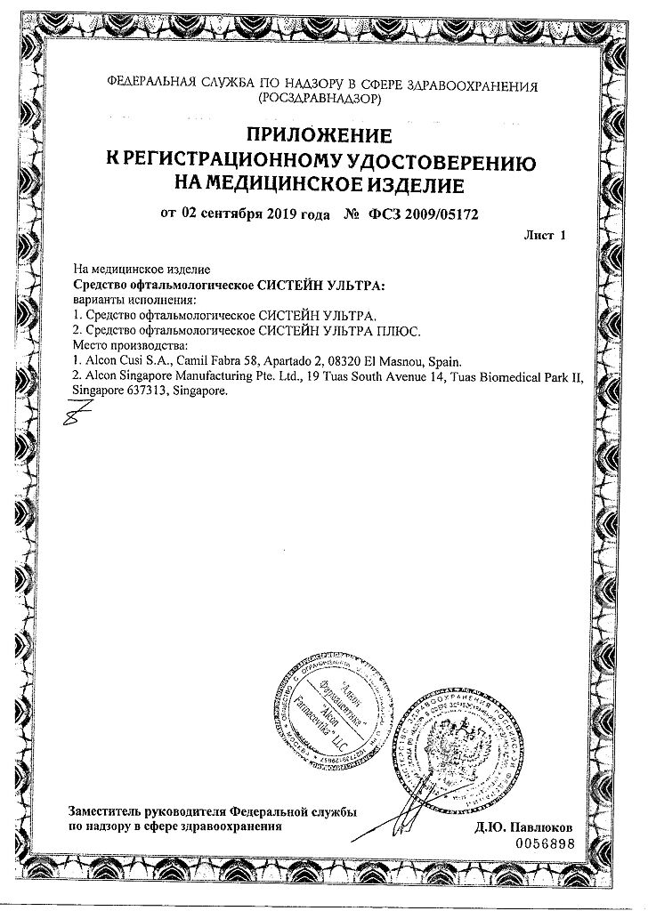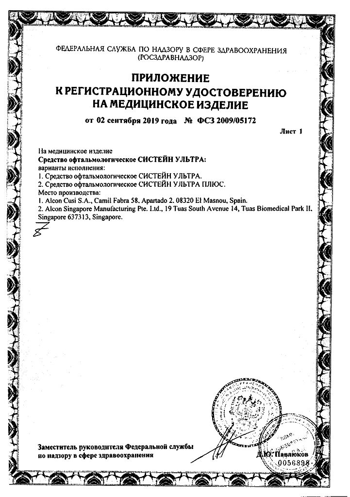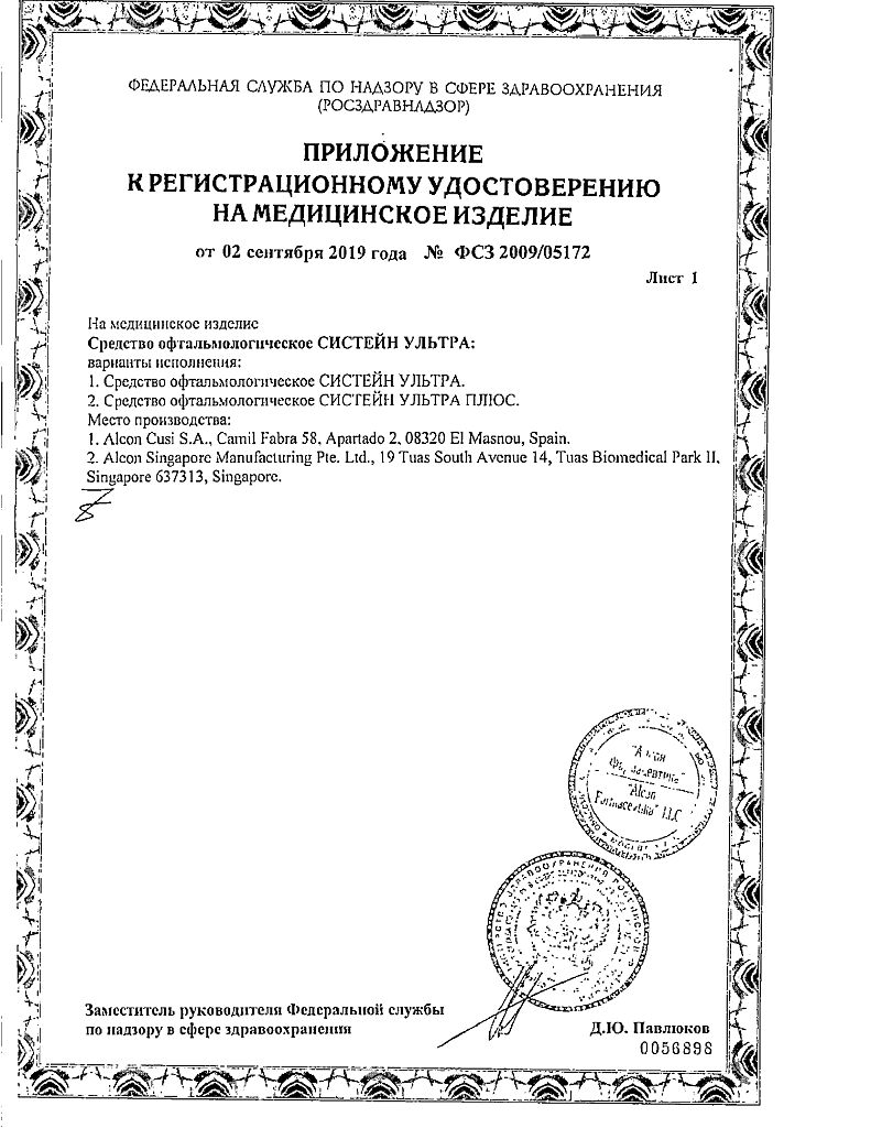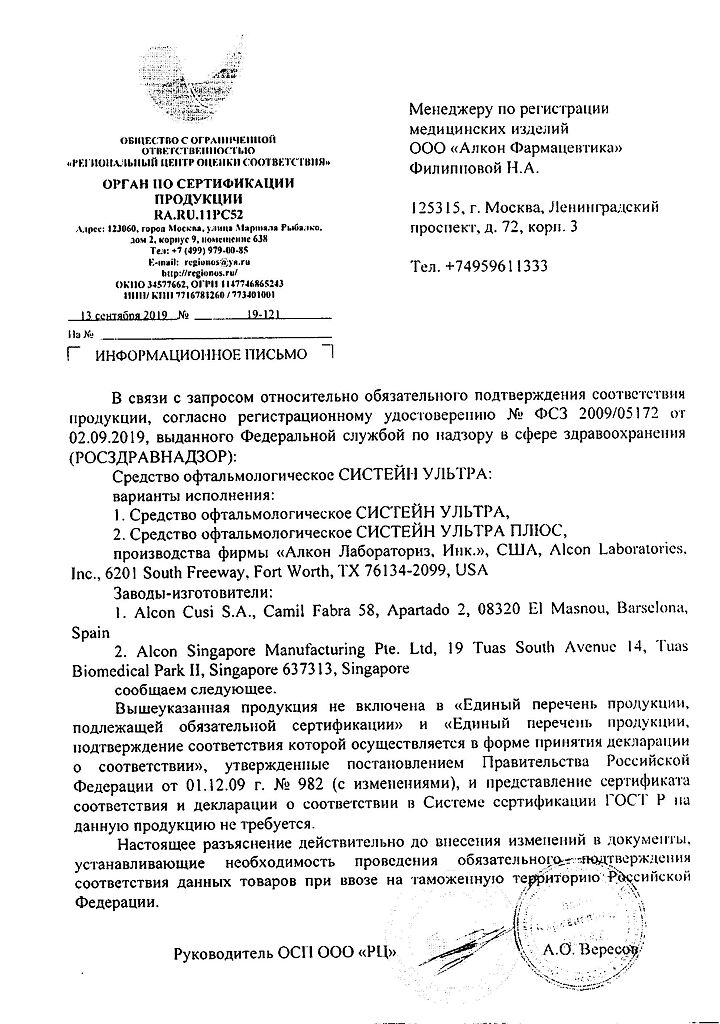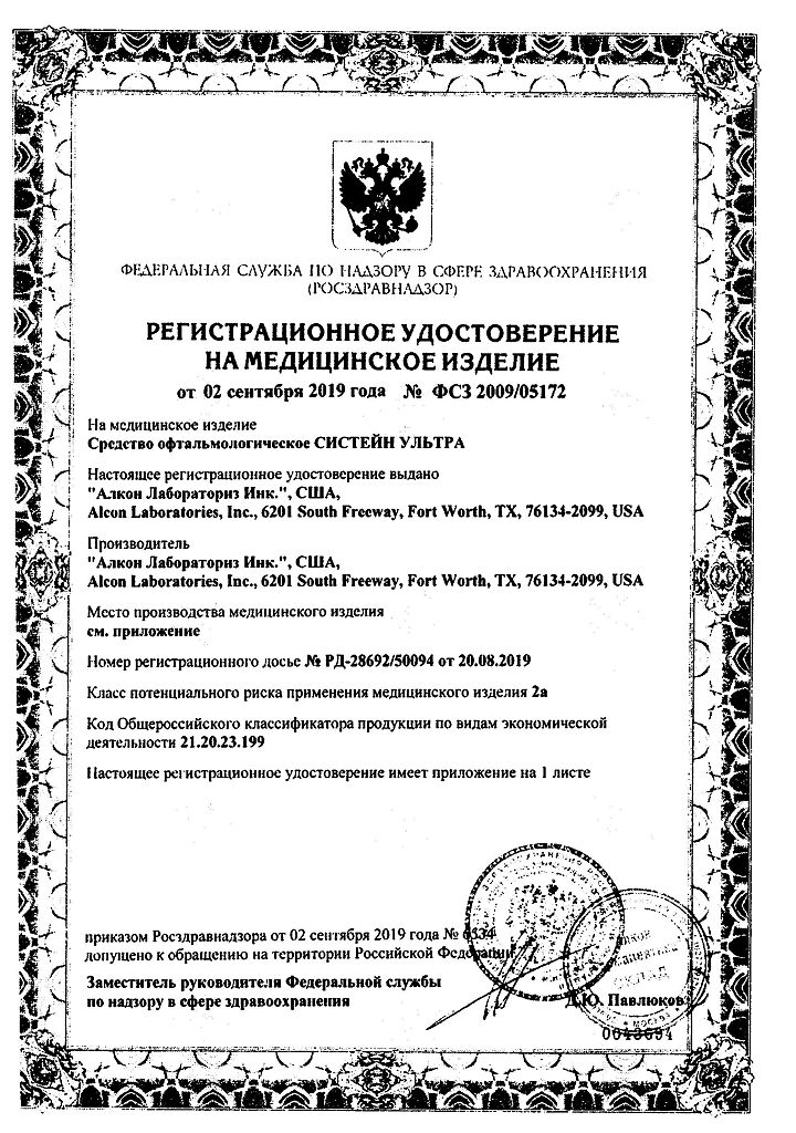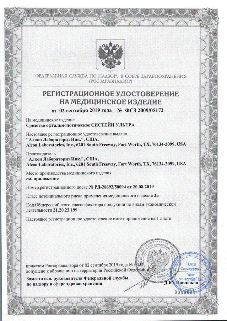 • Срок годности Систейн ультра - см. на упаковке. После первого вскрытия флакона - 6 месяцев.