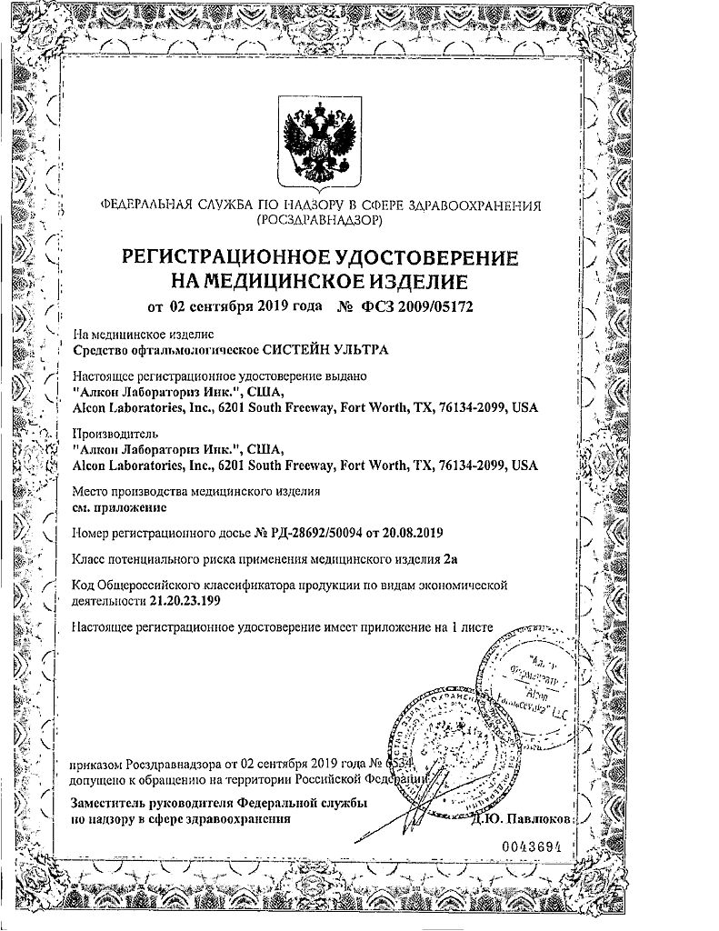 • Производителем Систейн ультра является - Алкон
