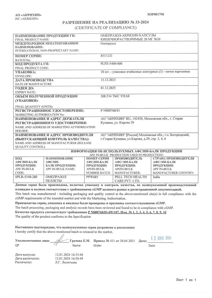 Производитель: Акрихин АО, Россия