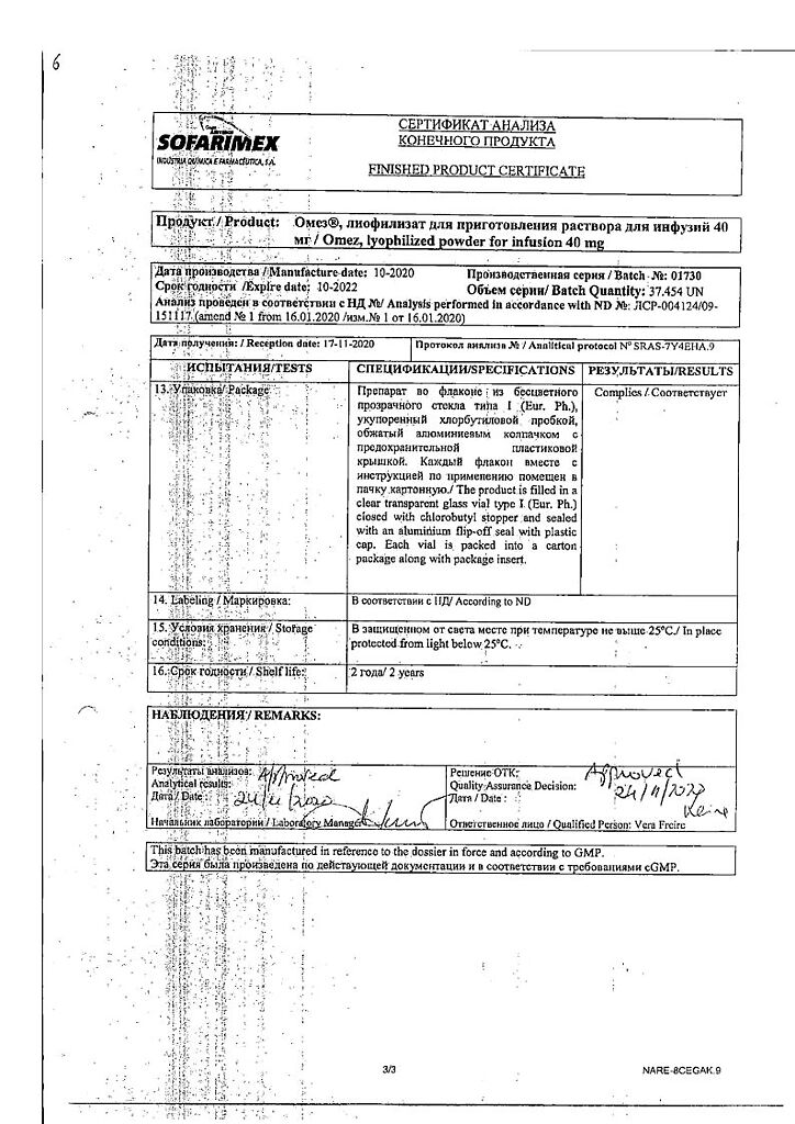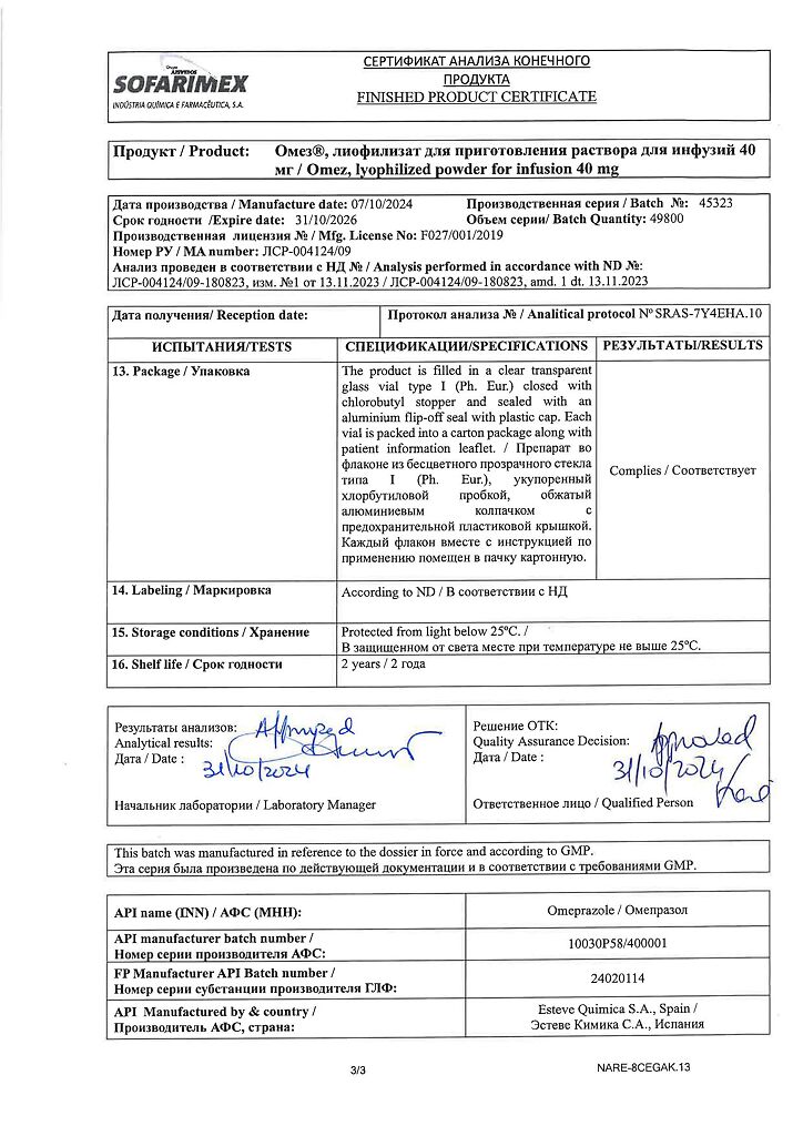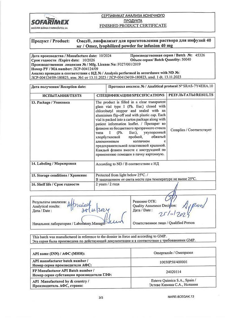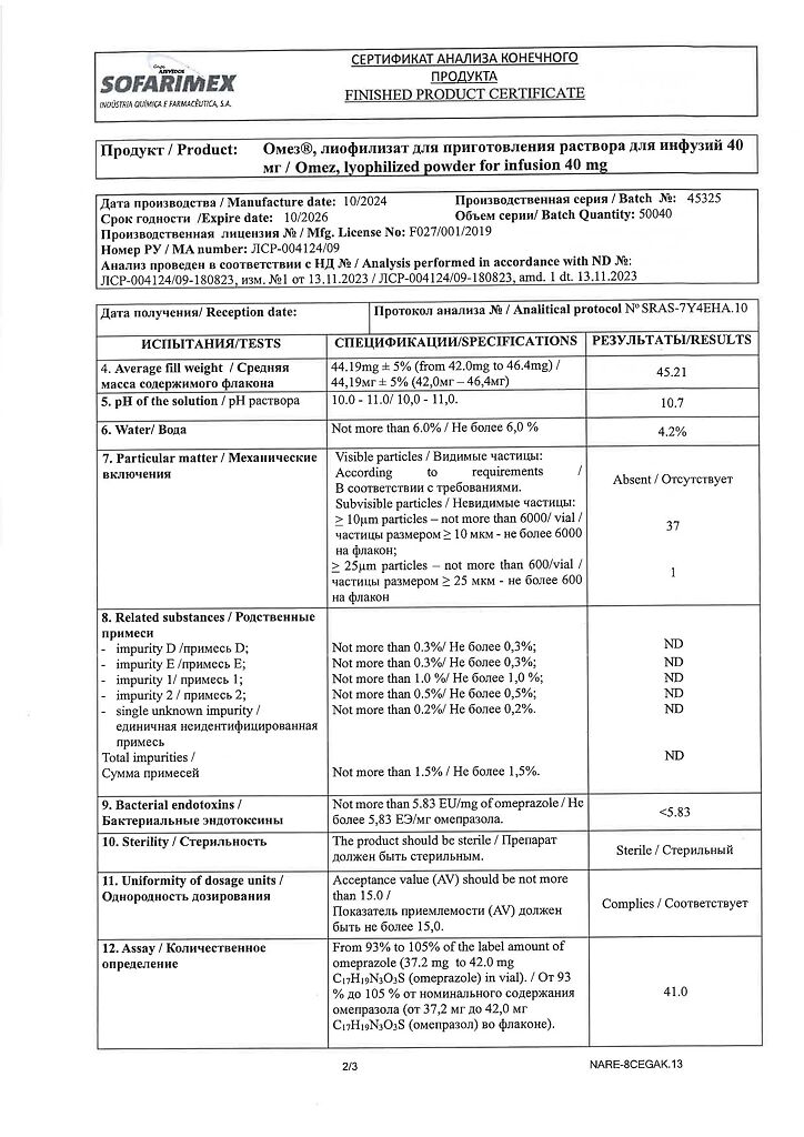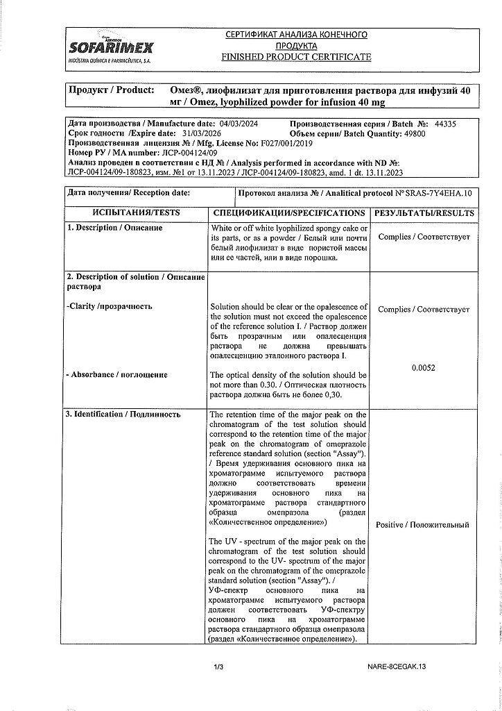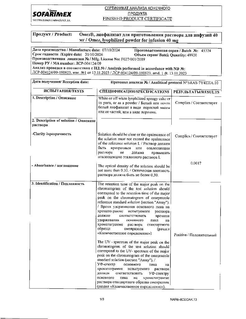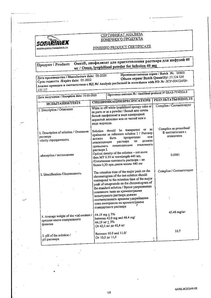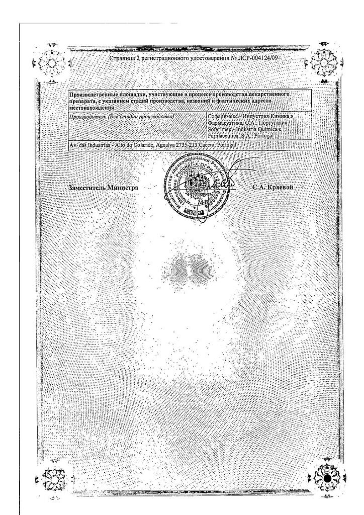 Производитель: Софаримекс Индустрия Кимика э Фармасуэтика С.А., Португалия
