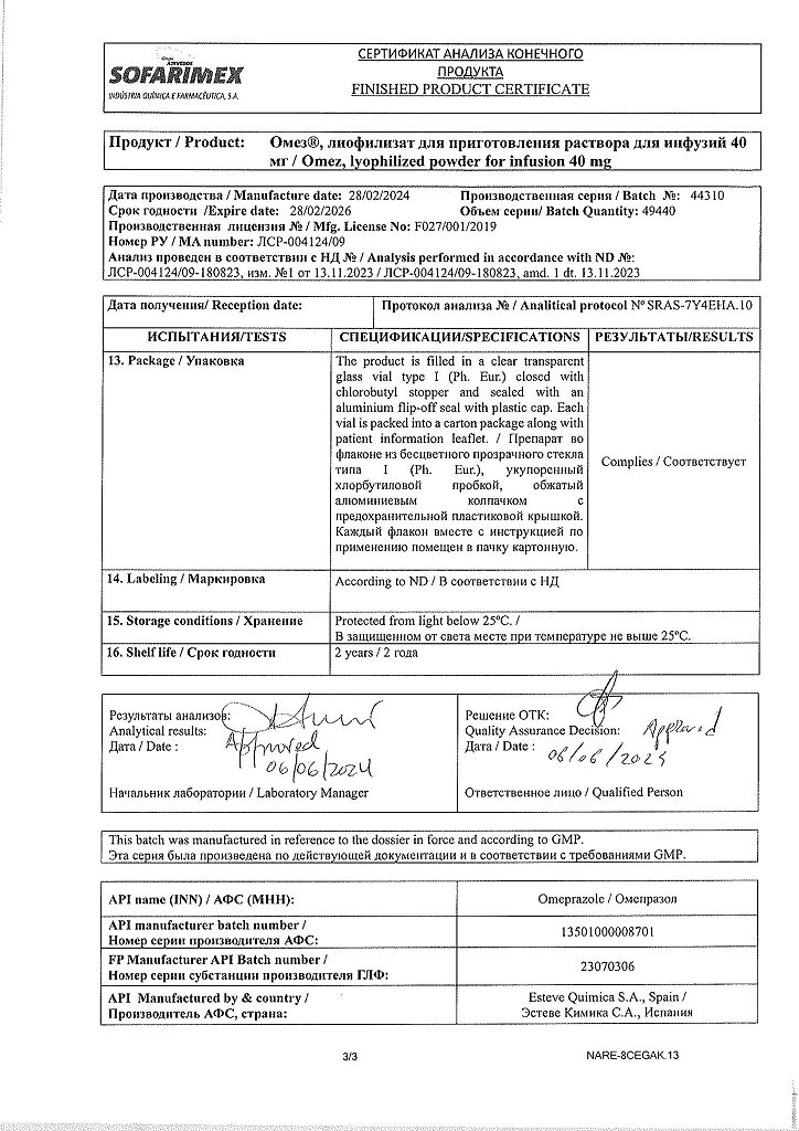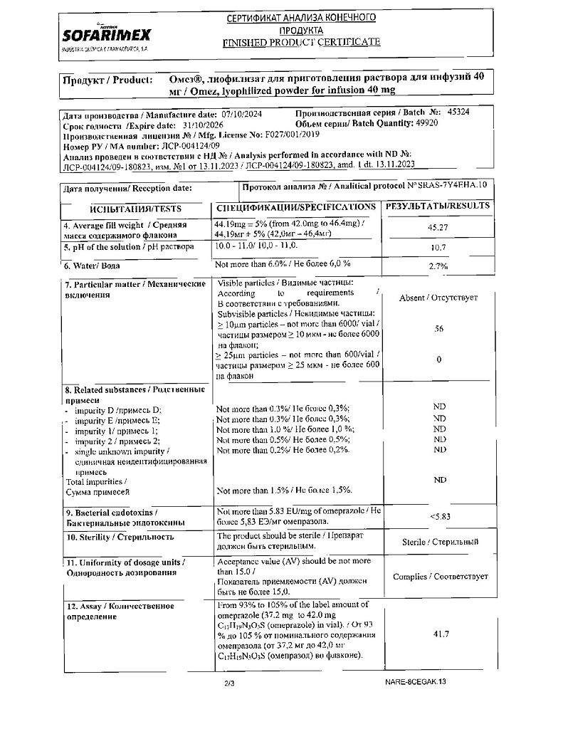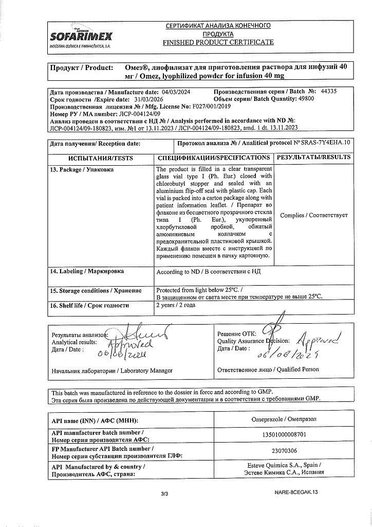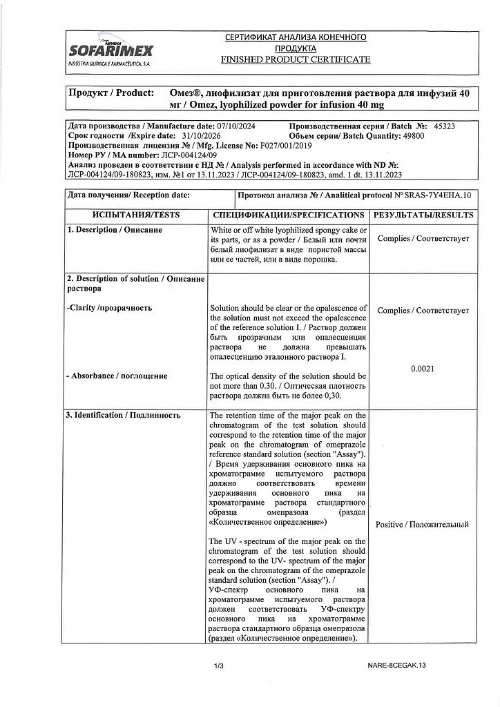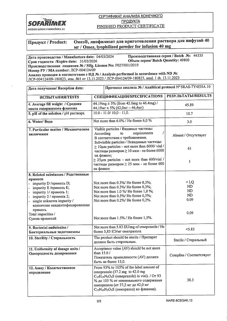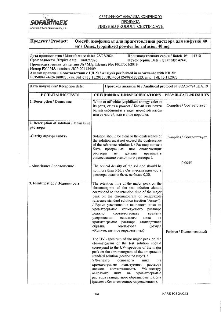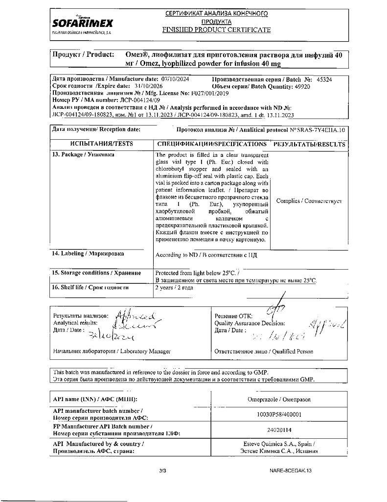 Производитель: Софаримекс Индустрия Кимика э Фармасуэтика С.А., Португалия