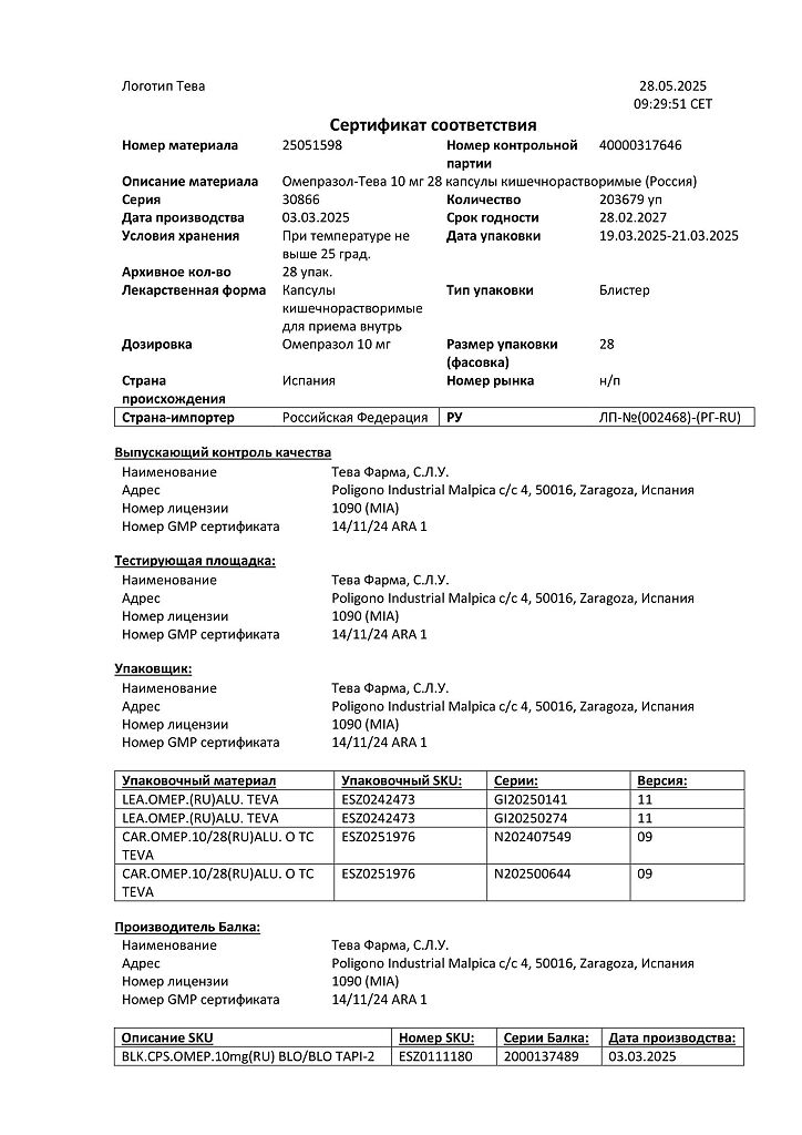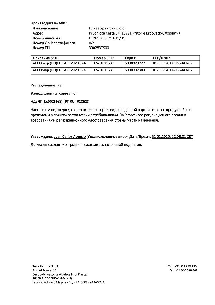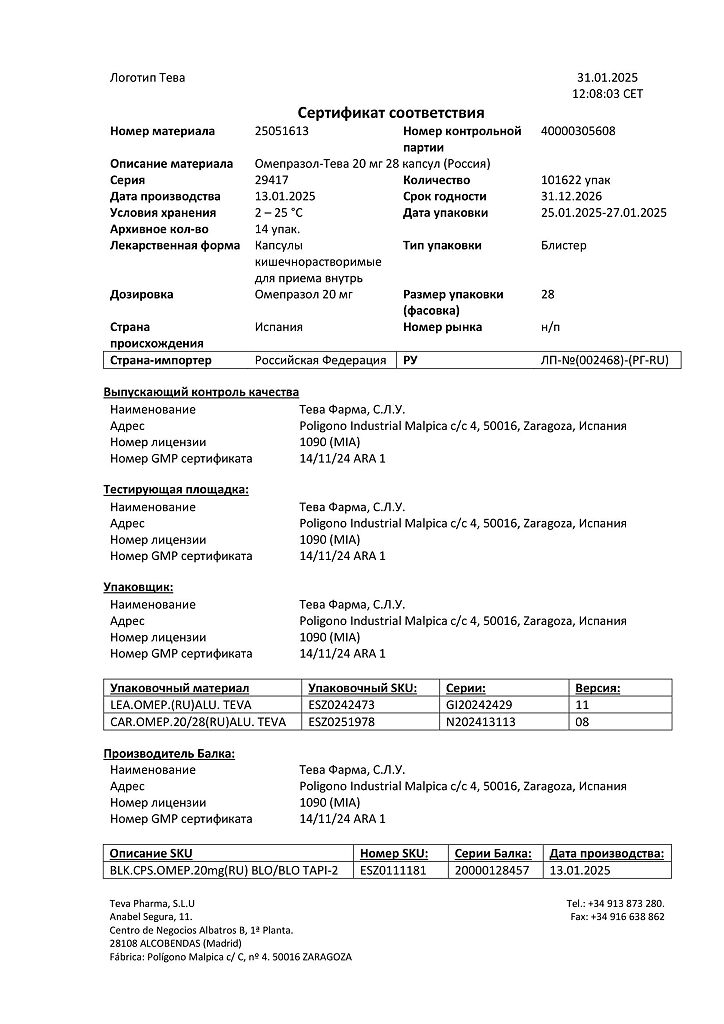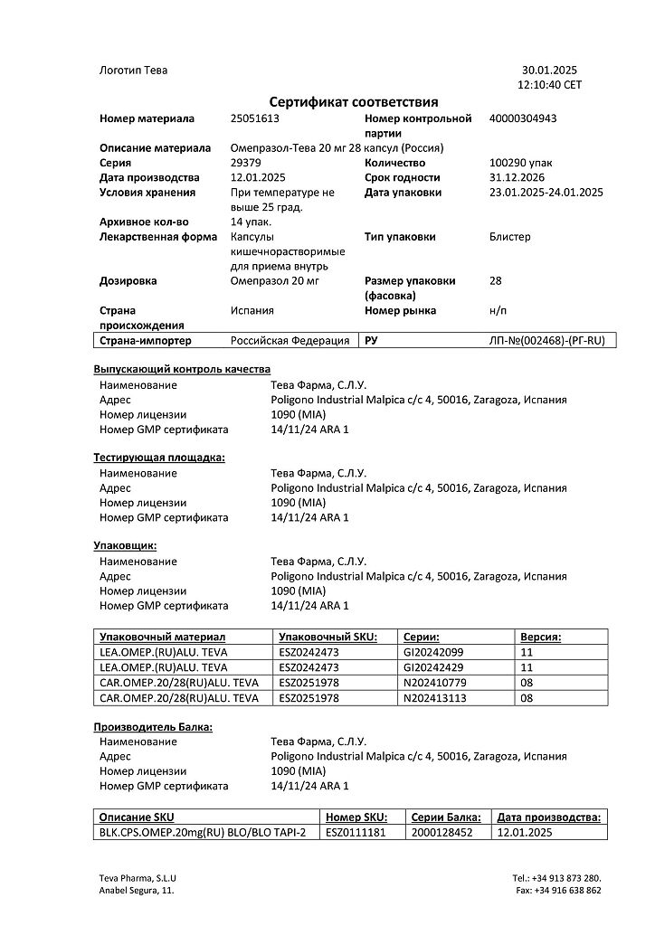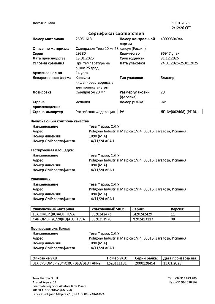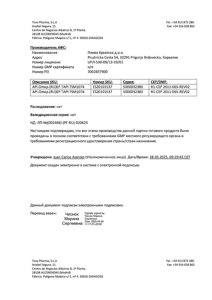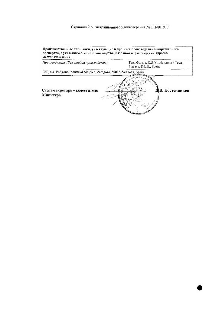 Производитель: Тева Фарма С.Л.У., Испания