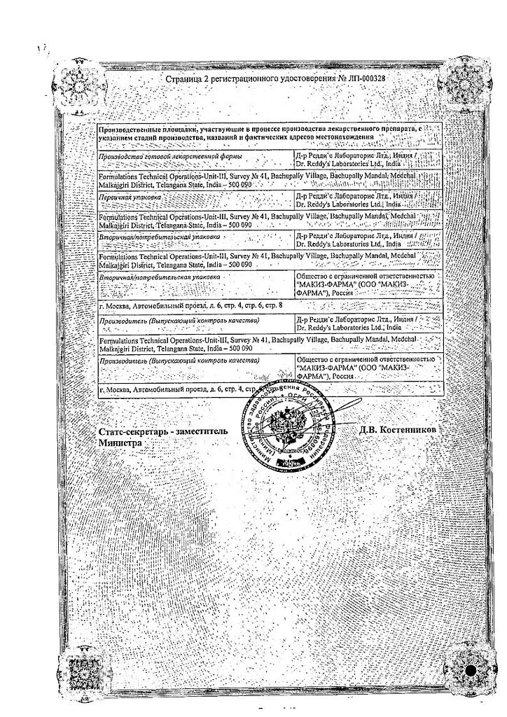Производитель: Д-р Редди`с Лабораторис Лтд, Индия