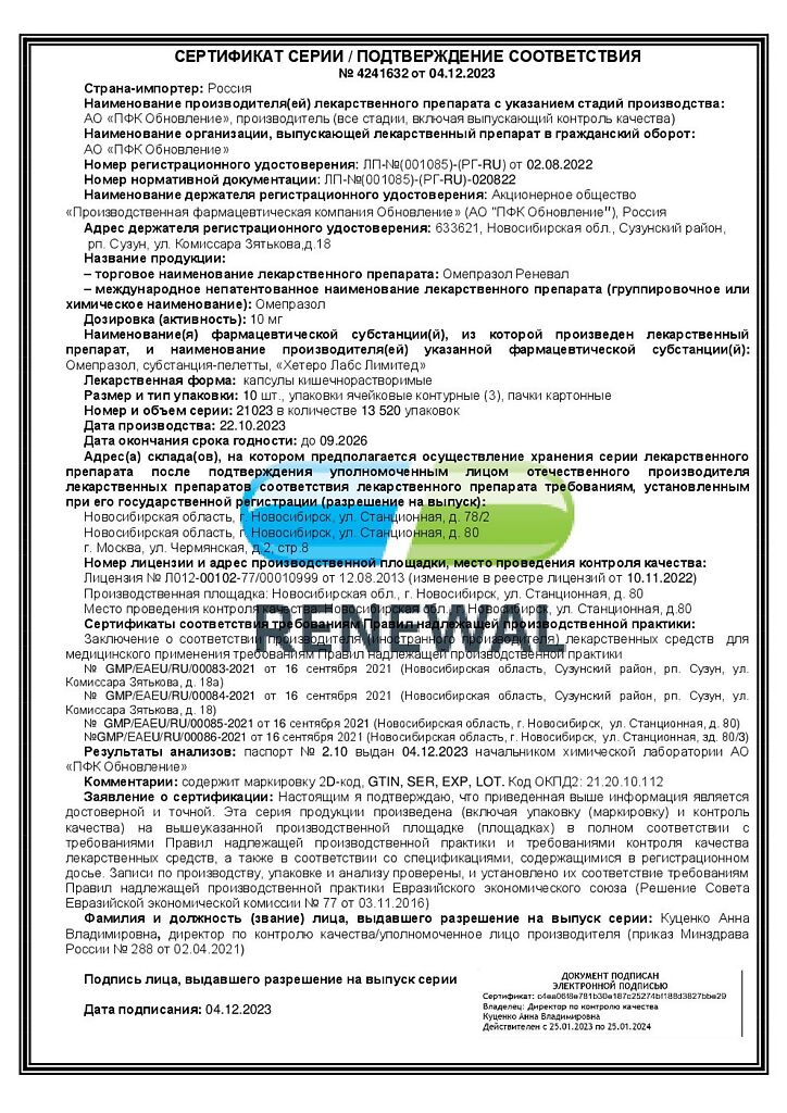 Производитель: Обновление ПФК АО, Россия