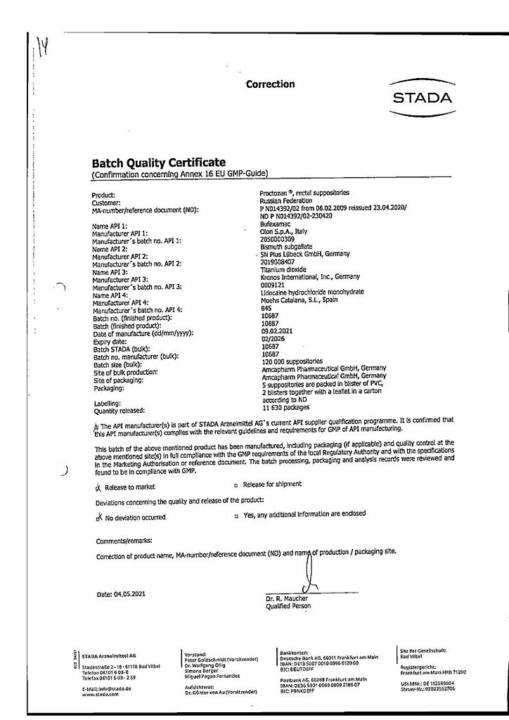 Производитель: Штада Арцнаймиттель АГ, Германия