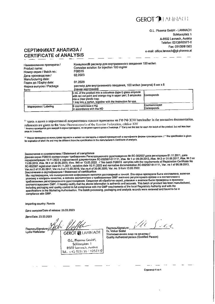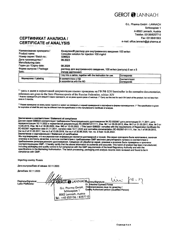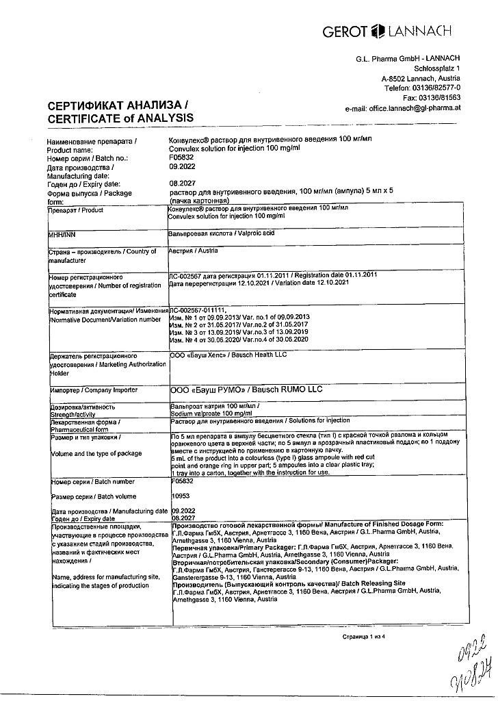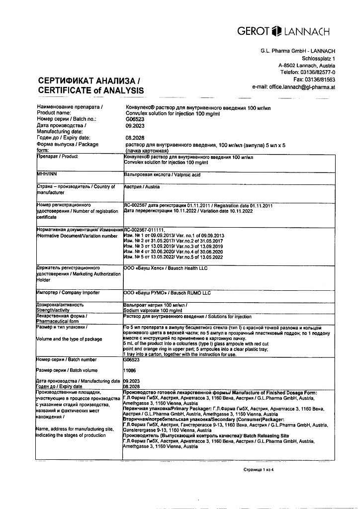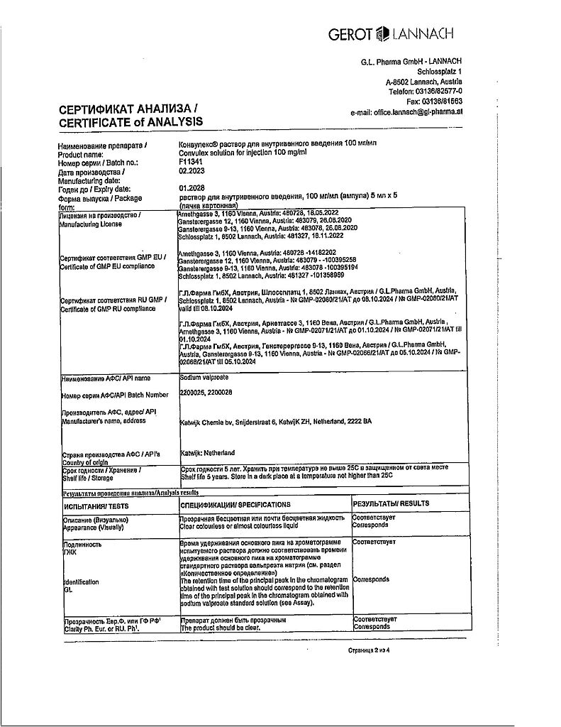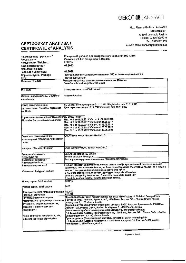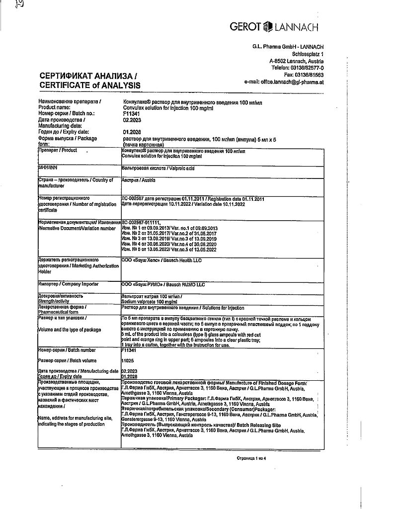 • Производителем Конвулекс является - Герот Фармацойтика ГмбХ