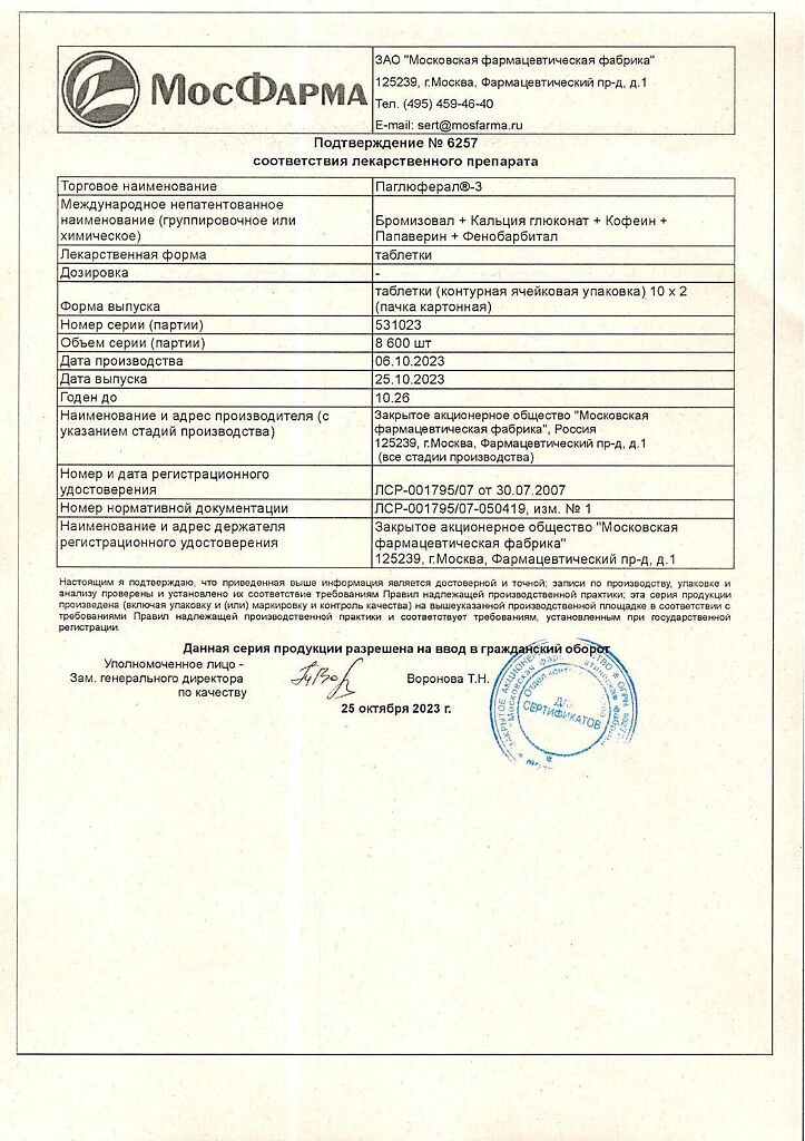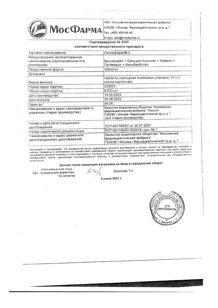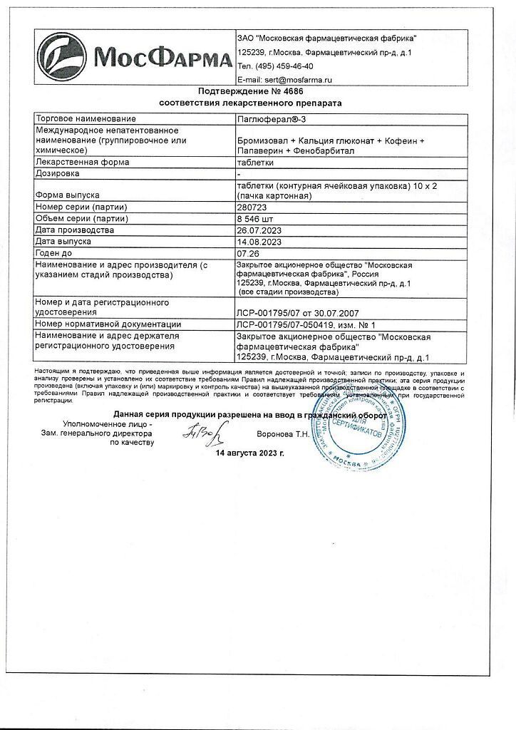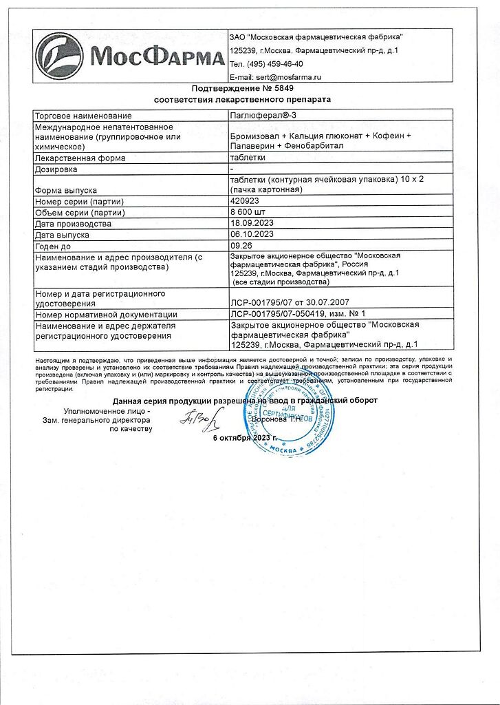 • Информацию об акциях и скидках на Паглюферал 3 уточняйте на нашем сайте.
