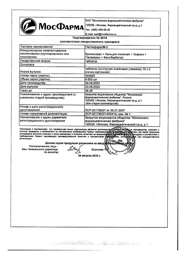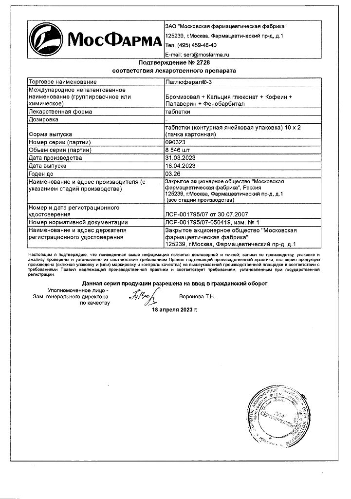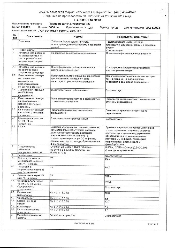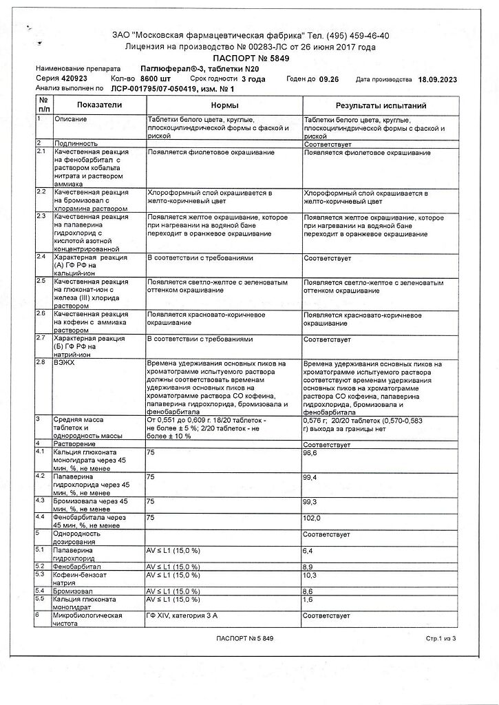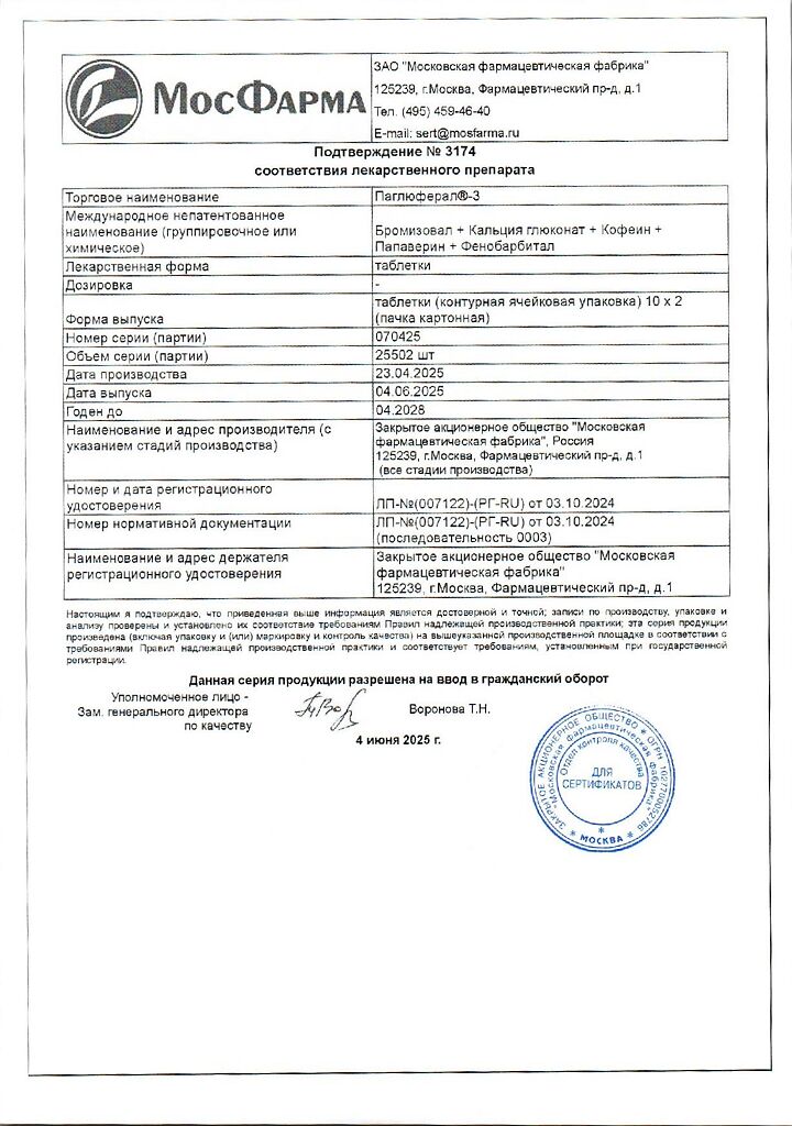 • Информацию об акциях и скидках на Паглюферал 3 уточняйте на нашем сайте.