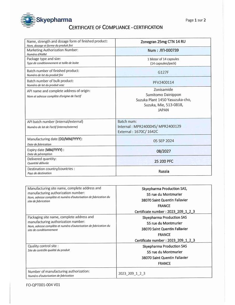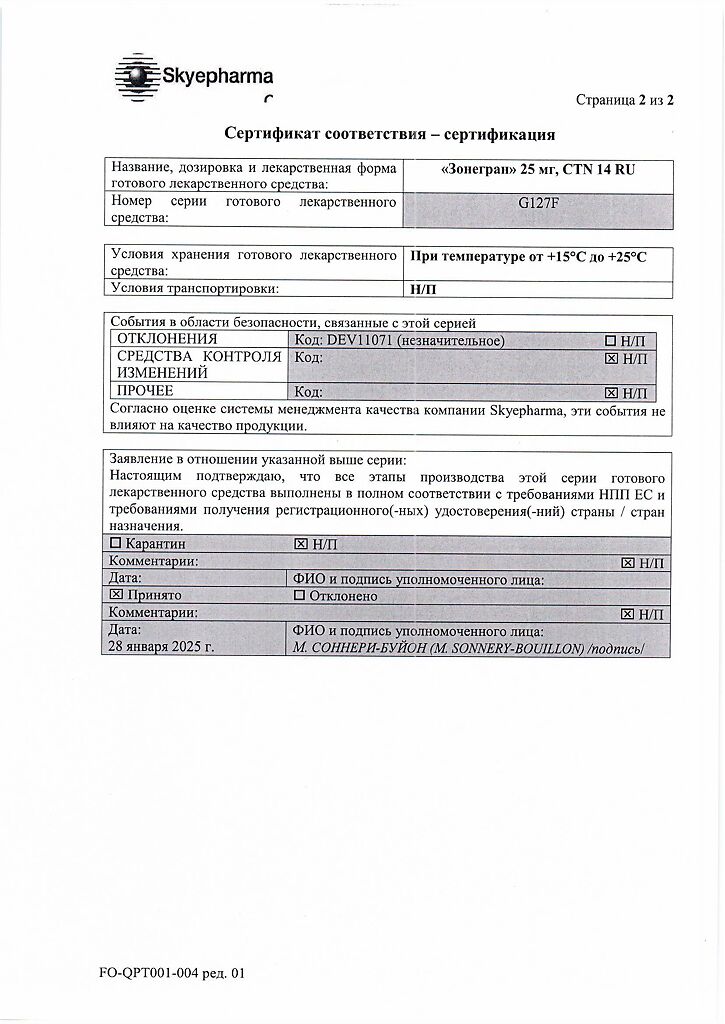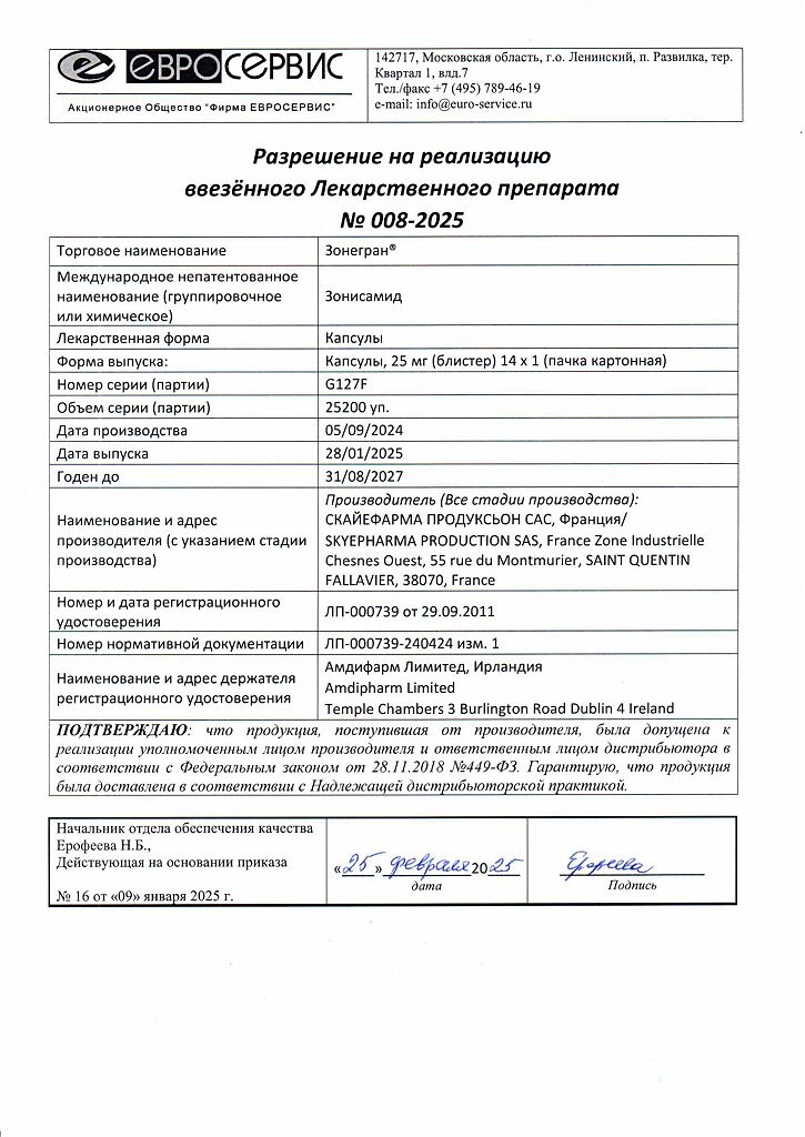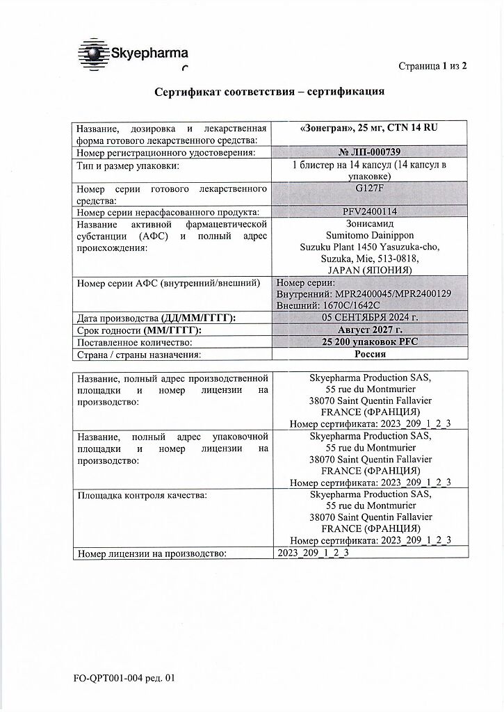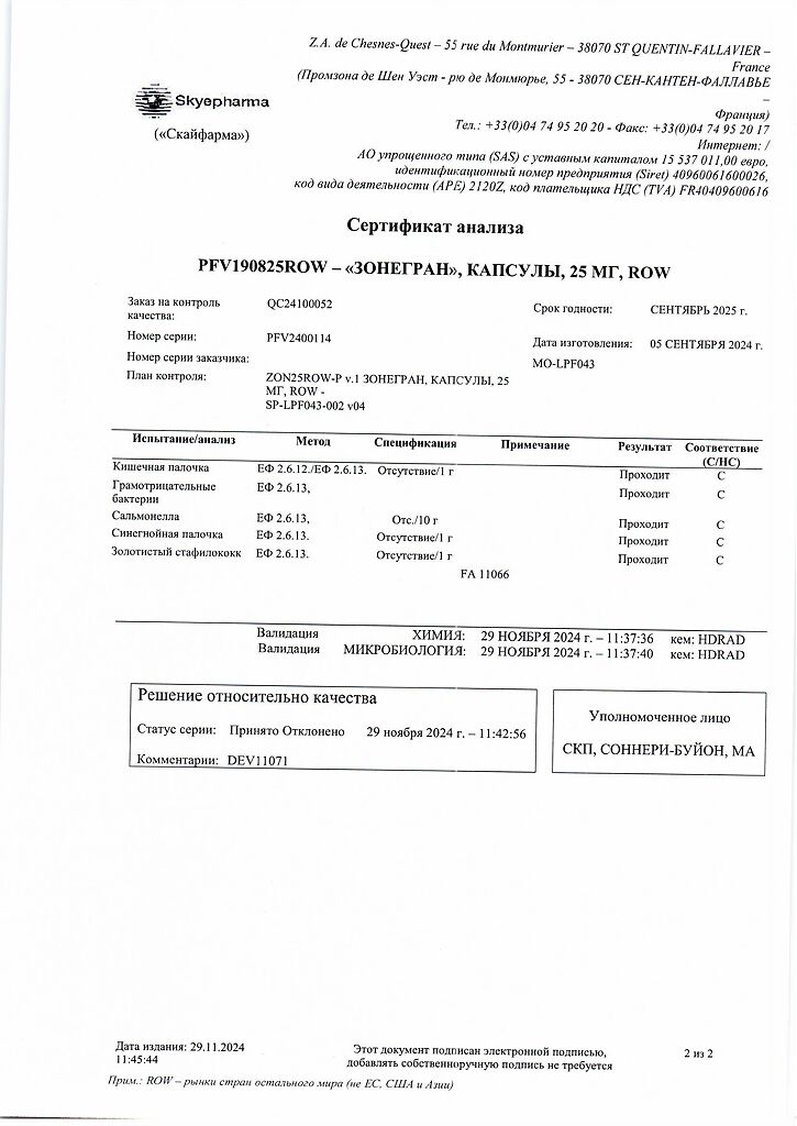 • Информацию об акциях и скидках на Зонегран уточняйте на нашем сайте.