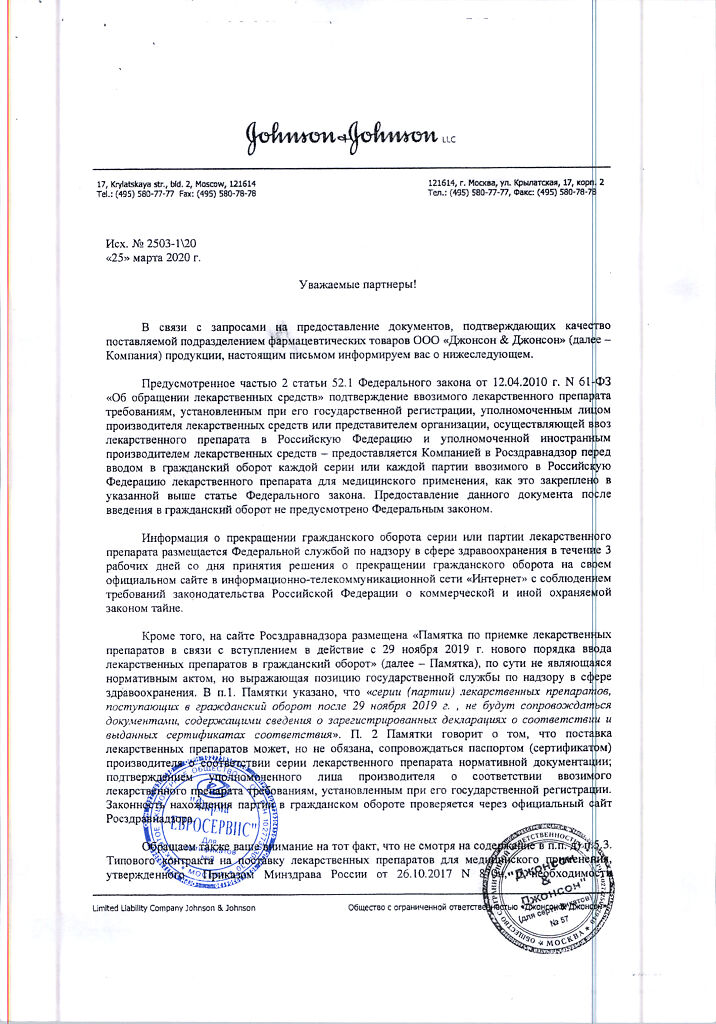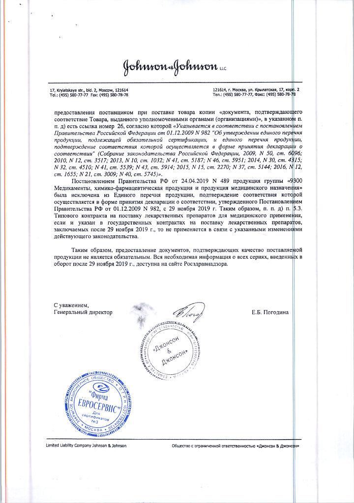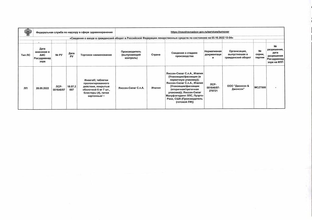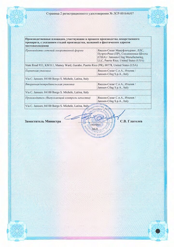 Производитель: Янссен Фармацевтика Н.В, Бельгия