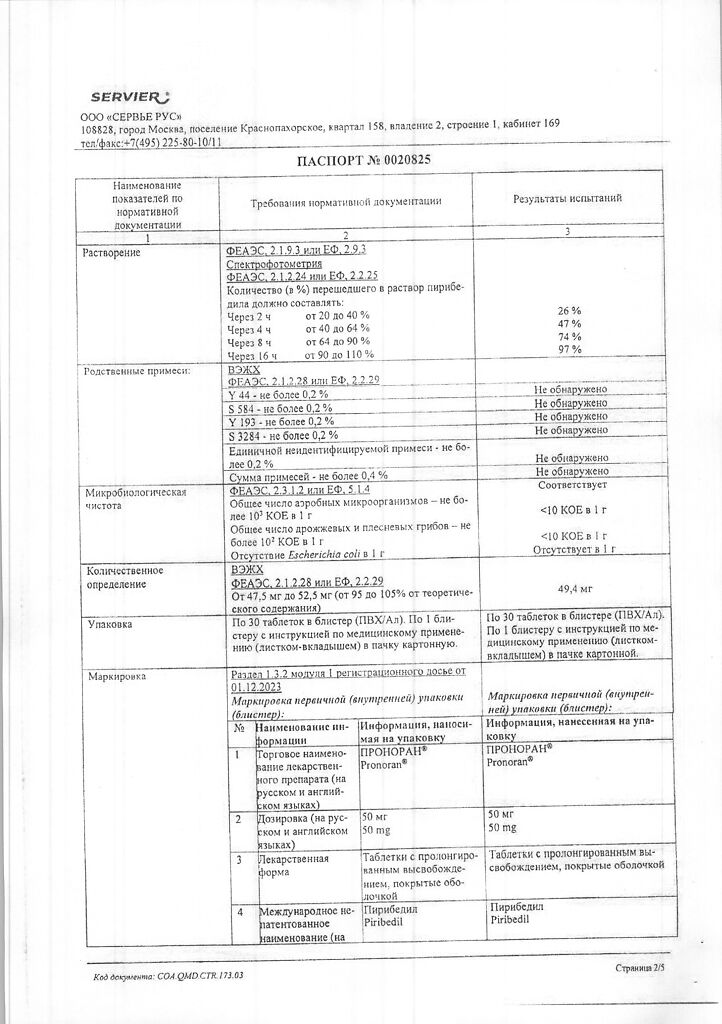 Эффективность Пронорана® в качестве монотерапии или в комбинации с леводопой при лечении болезни Паркинсона изучалась в ходе трех двойных слепых плацебо-контролируемых клинических исследований (2 исследования по сравнению с плацебо и одно — по сравнению с бромокриптином). В исследованиях участвовало 1103 пациента 1–3-й стадии по шкале Хен и Яра (Hoehn & Jahr ), 543 из которых получали Проноран® .