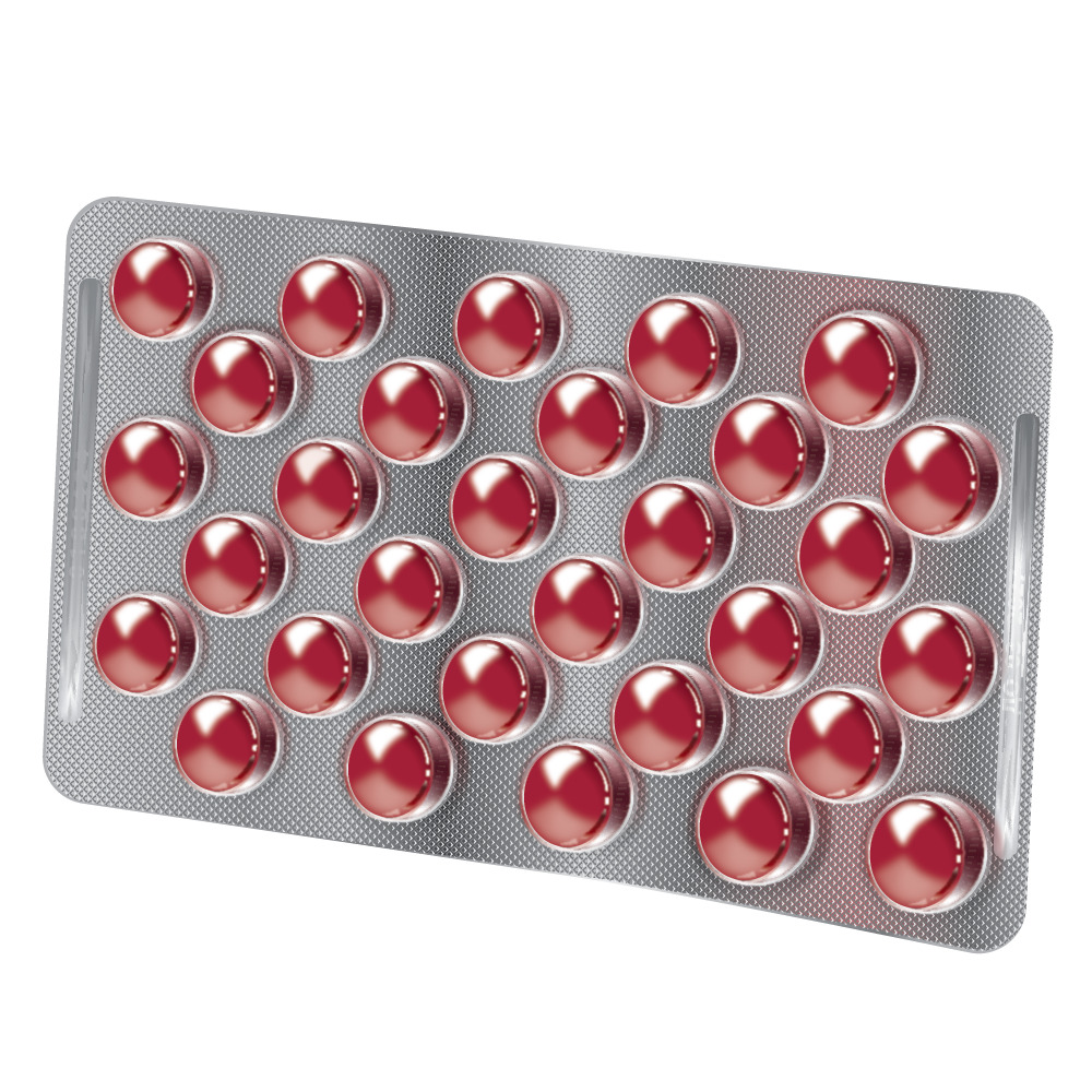 Оболочка: кармеллоза натрия —0,71 мг; полисорбат 80 —0,3 мг; краситель пунцовый Понсо 4R — 3,87 мг; повидон — 6,31 мг; натрия гидрокарбонат —0,15 мг; кремния диоксид коллоидный —0,27 мг; сахароза — 57,17 мг; тальк — 50,37 мг; титана диоксид — 0,78 мг; воск пчелиный белый — 0,07 мг;