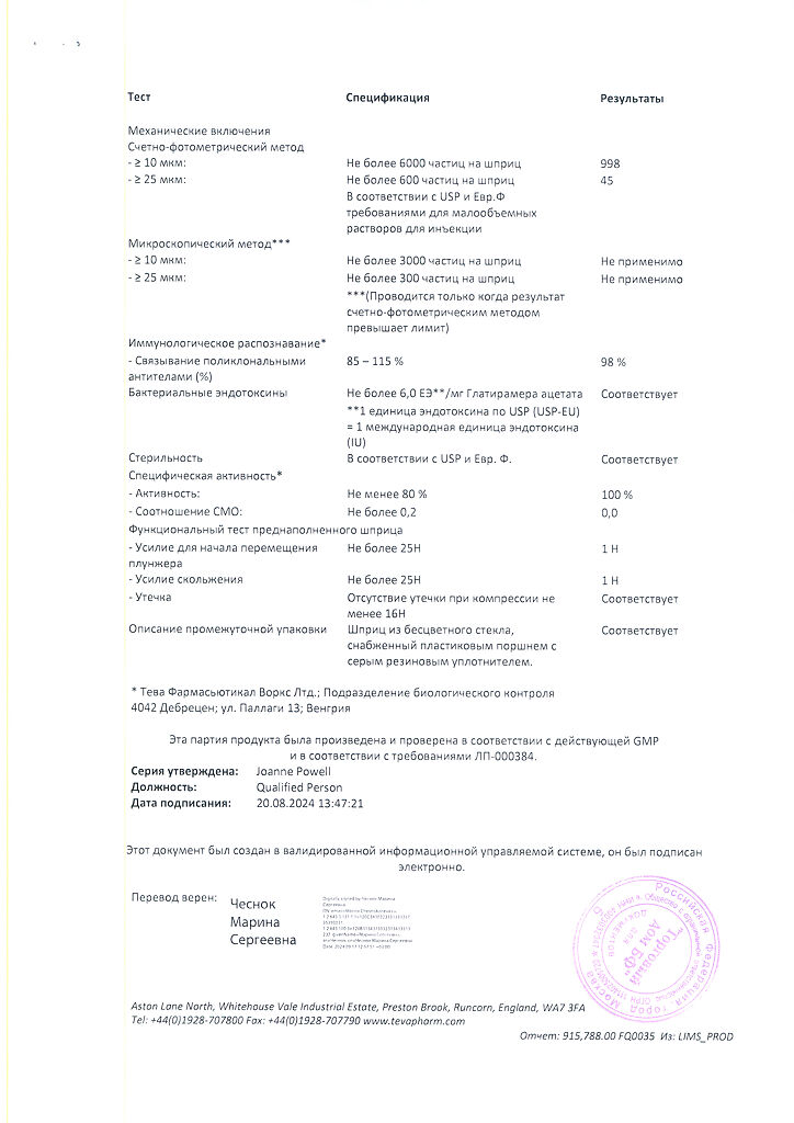 Действующее вещество: Глатирамера ацетат