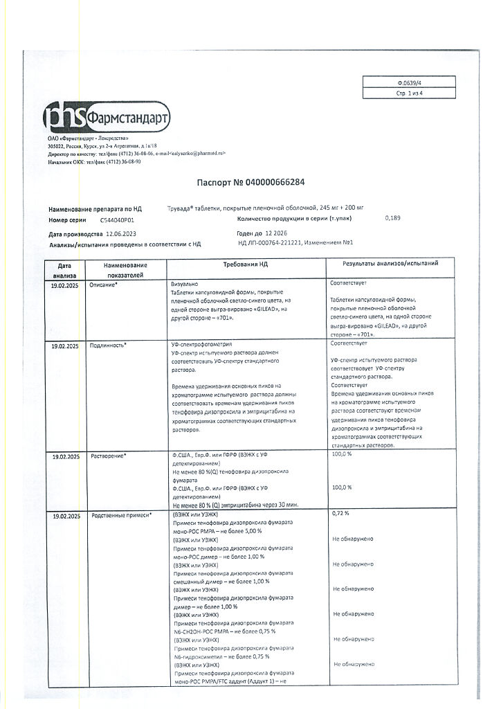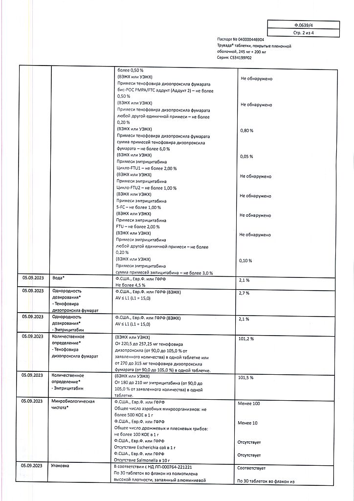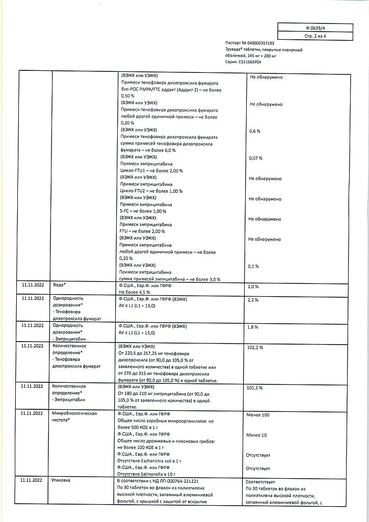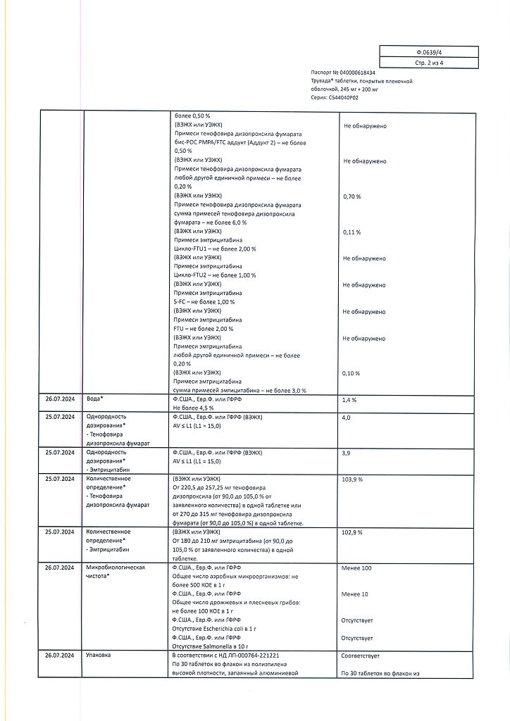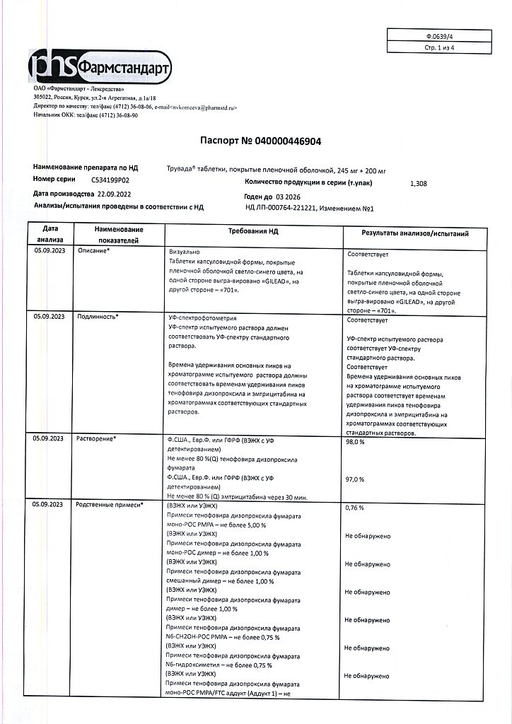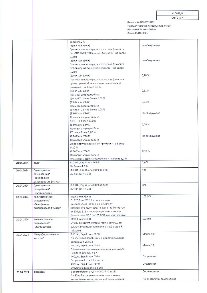 Трувада таблетки покрыт.плен.об. 245 мг+200 мг 30 шт