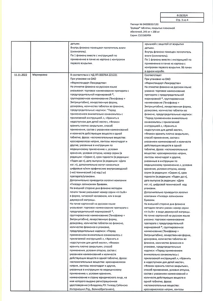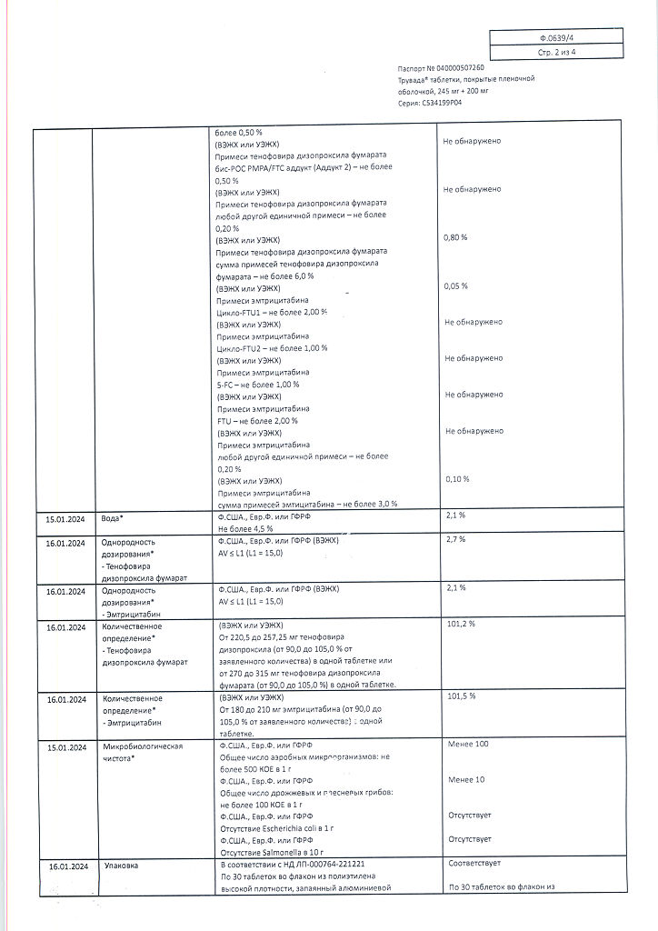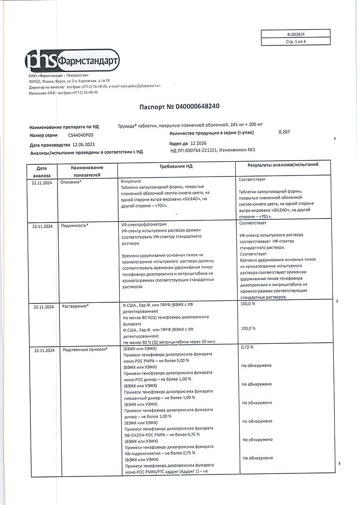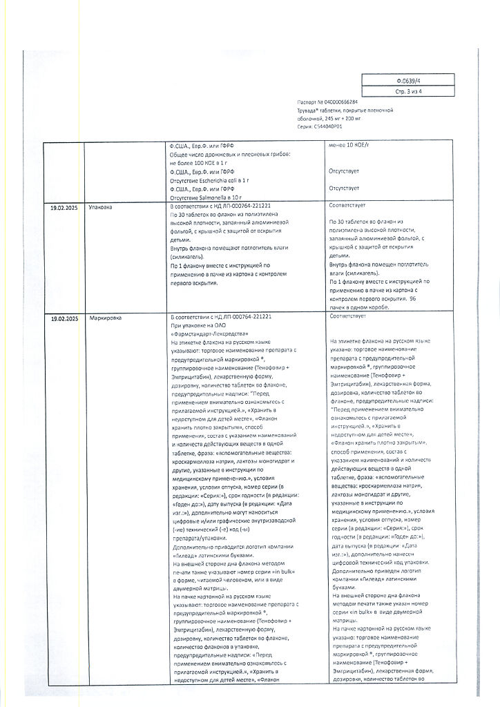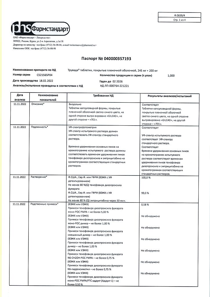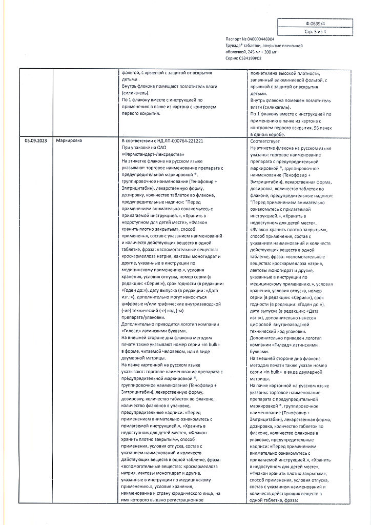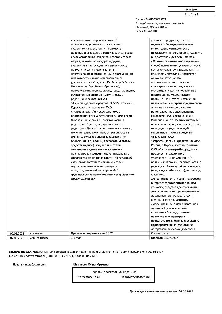 Трувада таблетки покрыт.плен.об. 245 мг+200 мг 30 шт