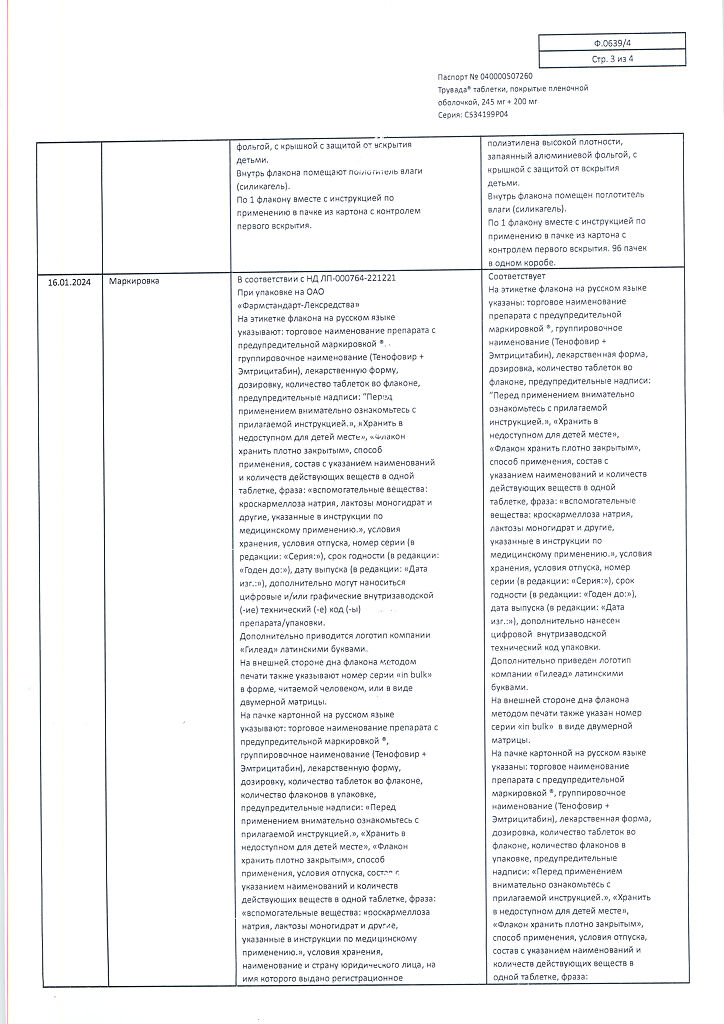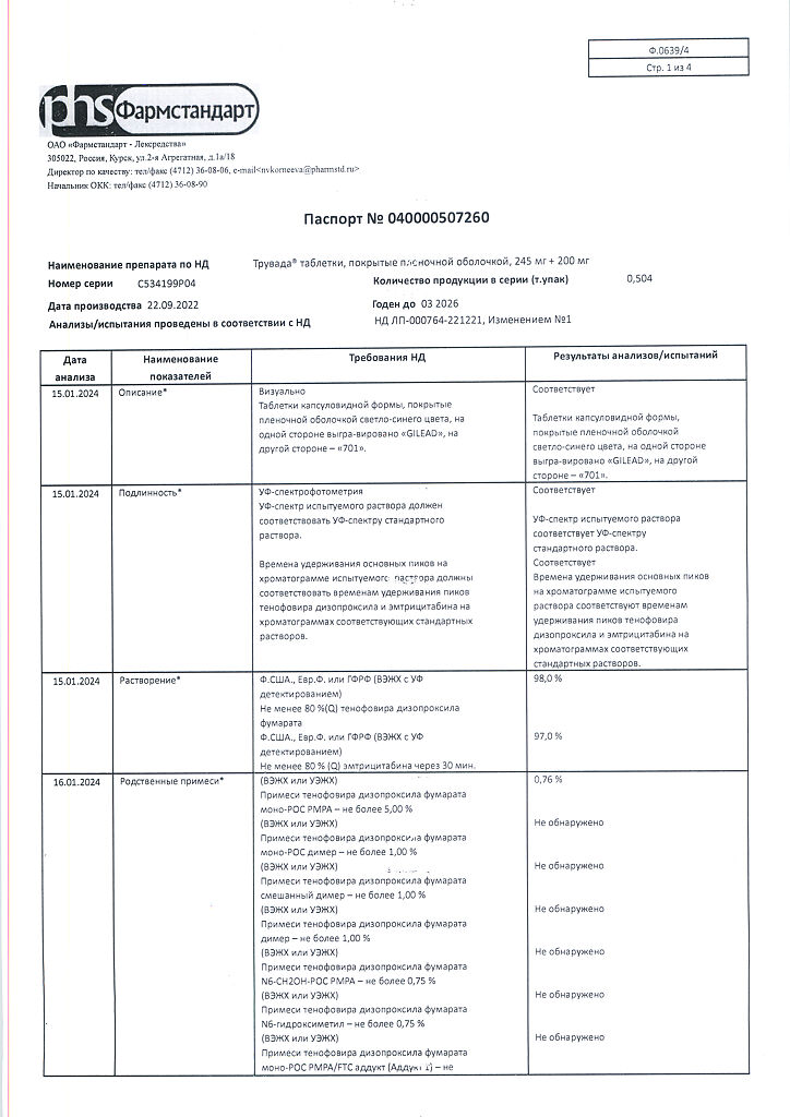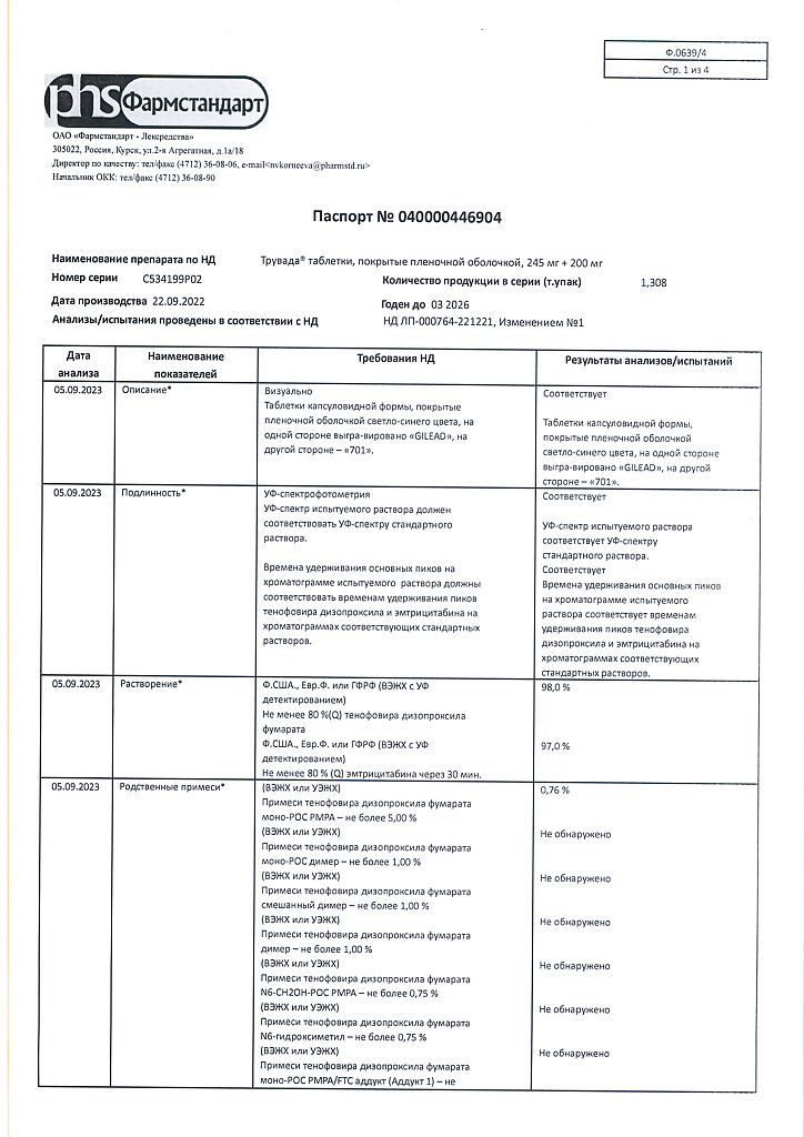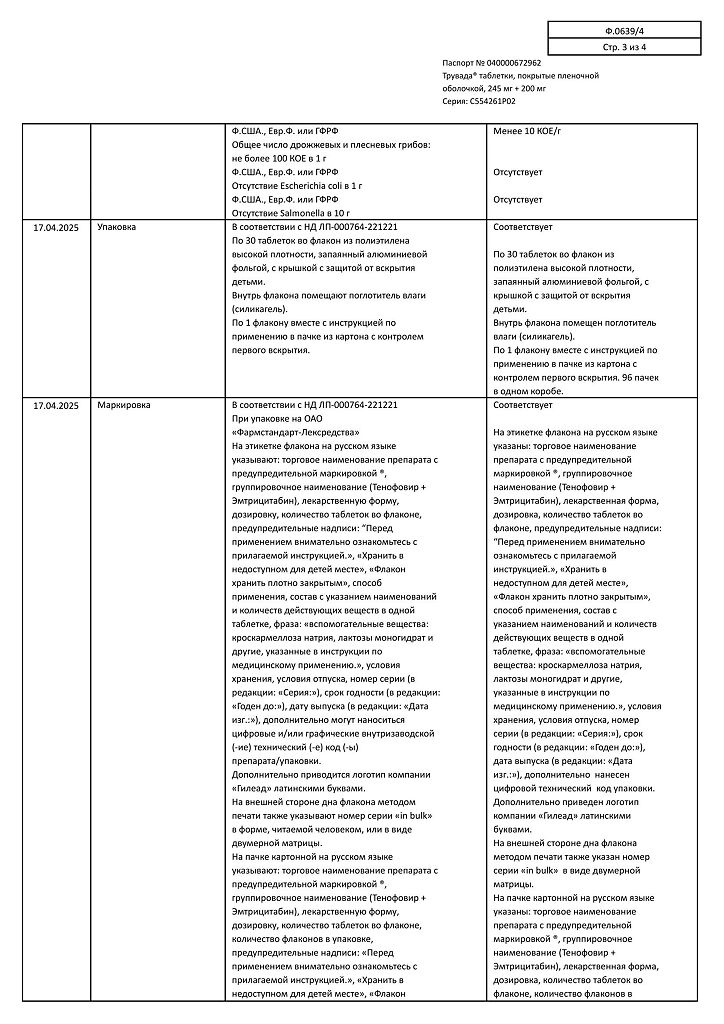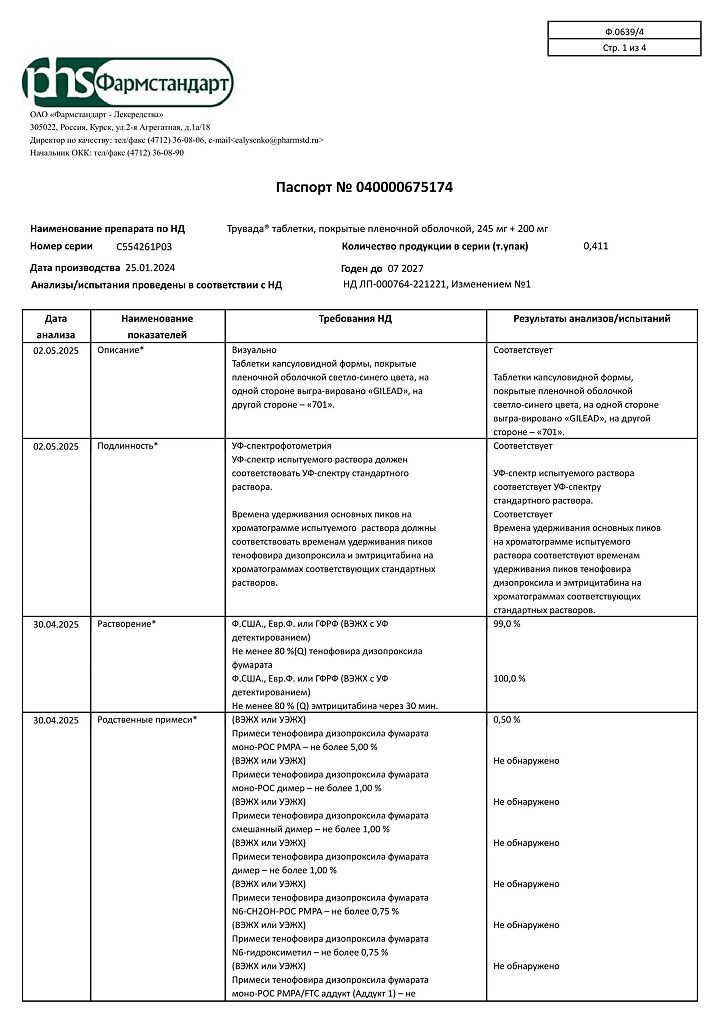 Производитель: Гилеад Сайенсиз Айелэнд Юси, Ирландия