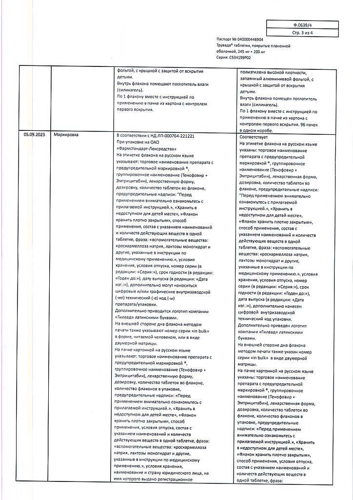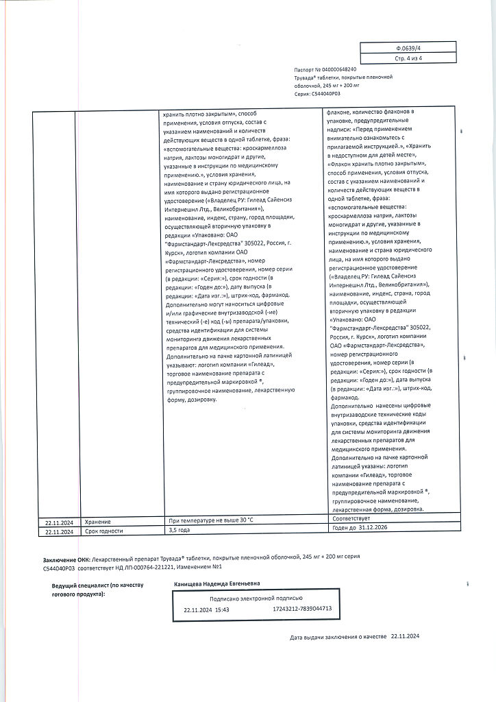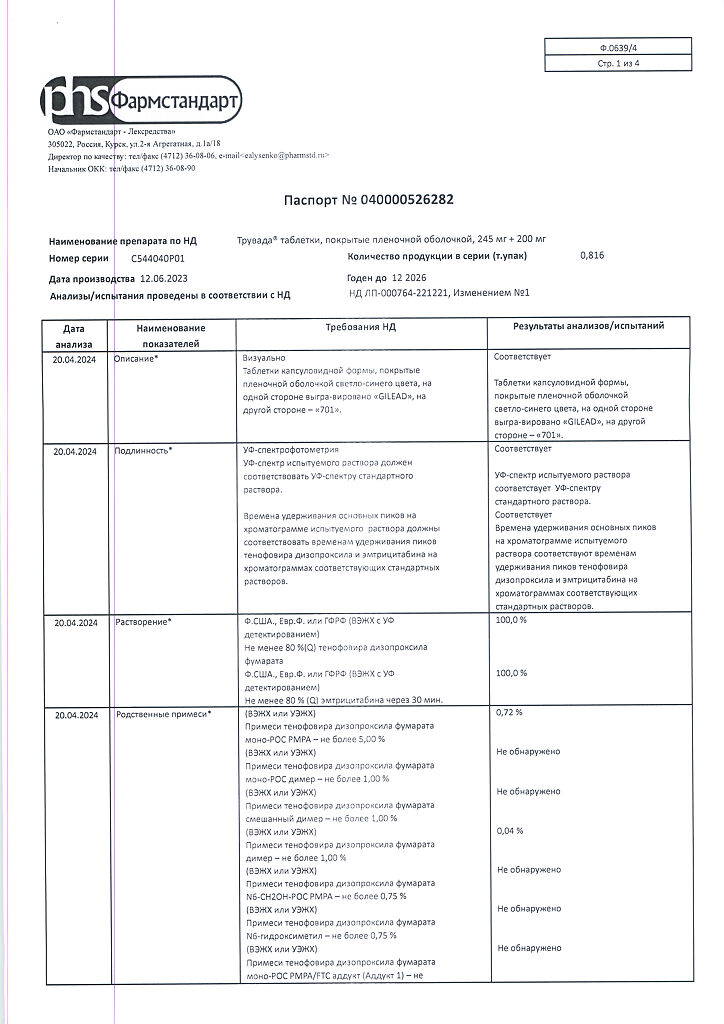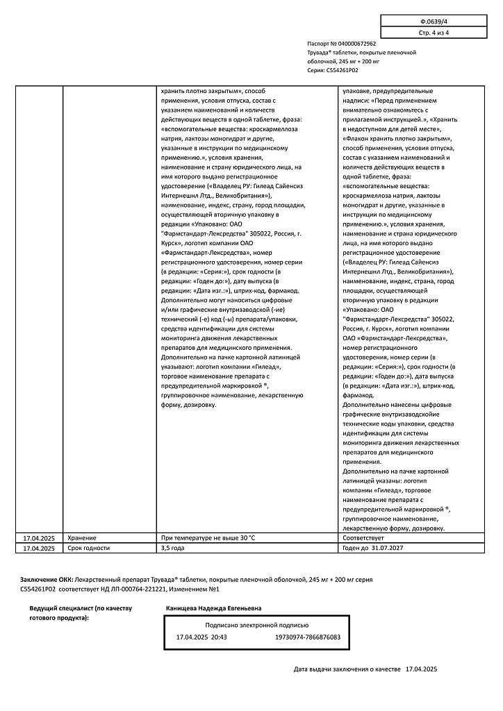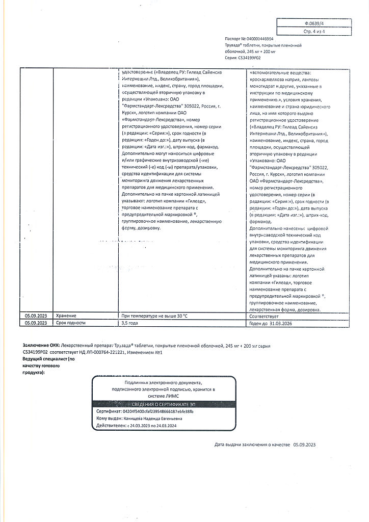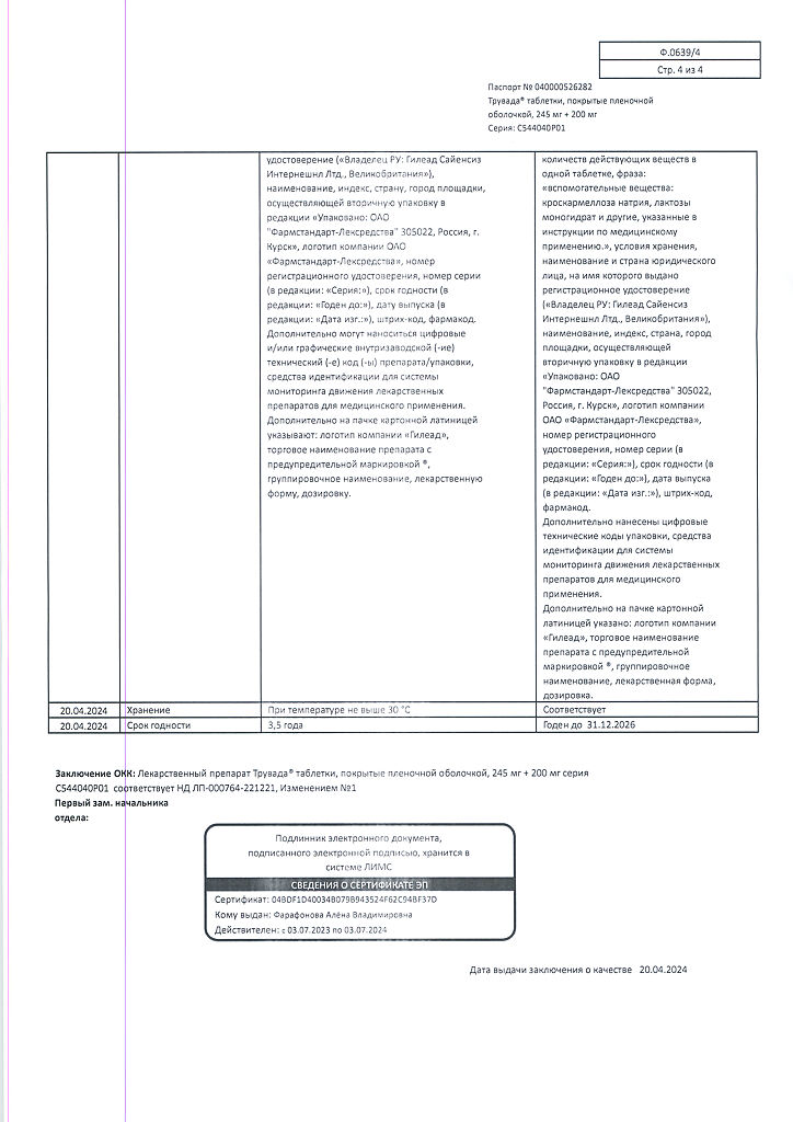 Производитель: Гилеад Сайенсиз Айелэнд Юси, Ирландия