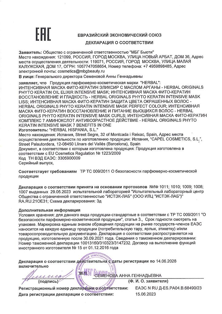 Herbal Originals Keratin Маска интенсивная фито-кератин для окрашенных волос Защита цвета 300 мл 1 шт