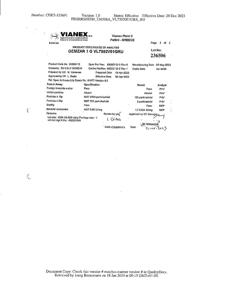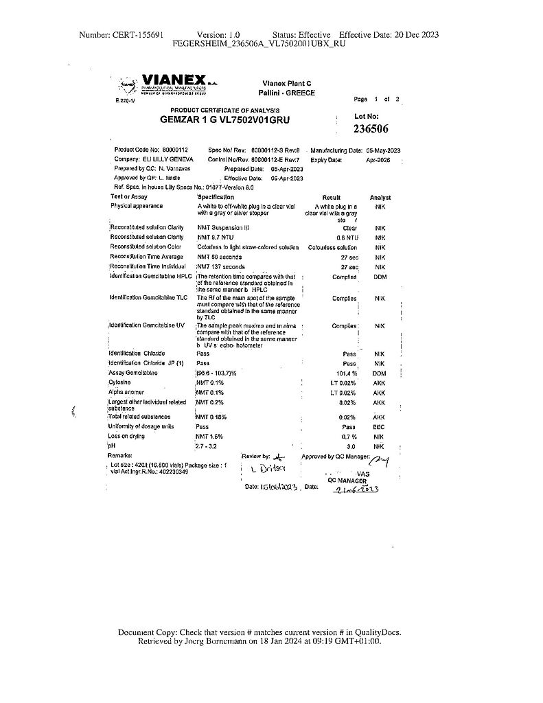 Максимальная концентрация гемцитабина не должна превышать 40 мг/мл. В растворах, приготовленных с концентрацией более 40 мг/мл, возможно неполное растворение.