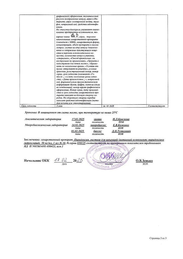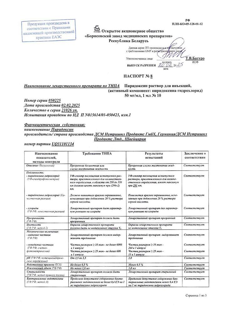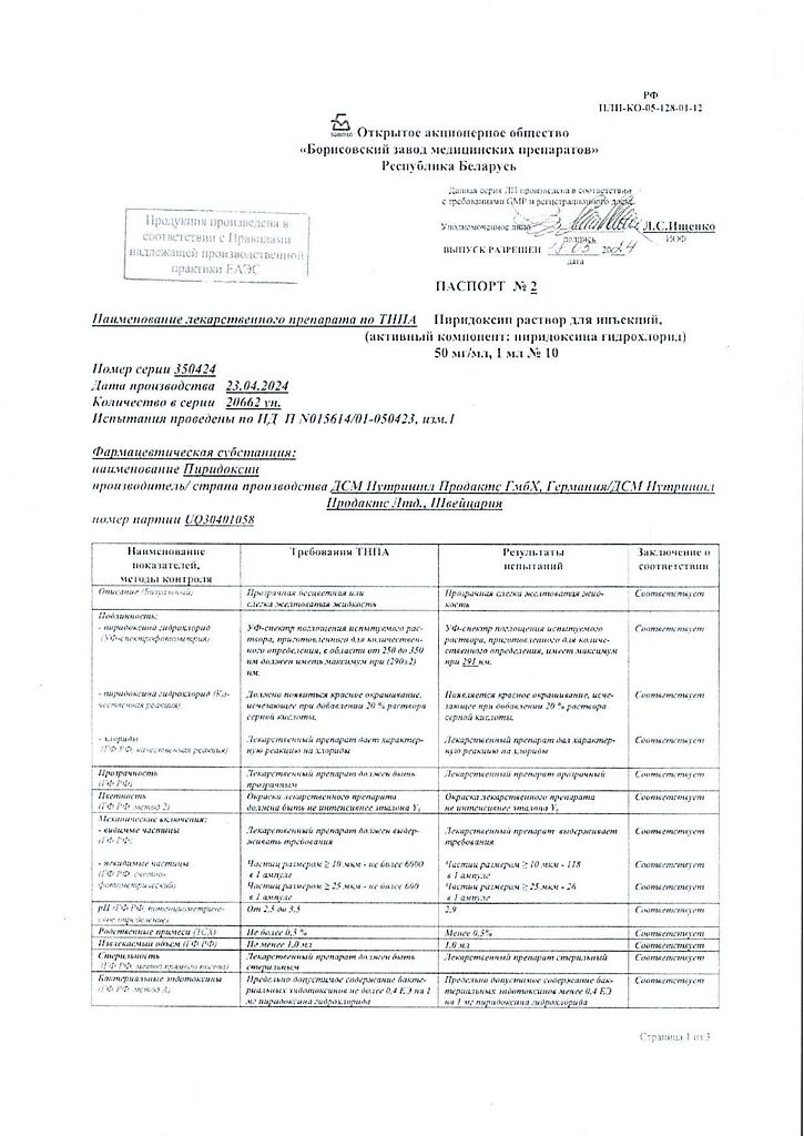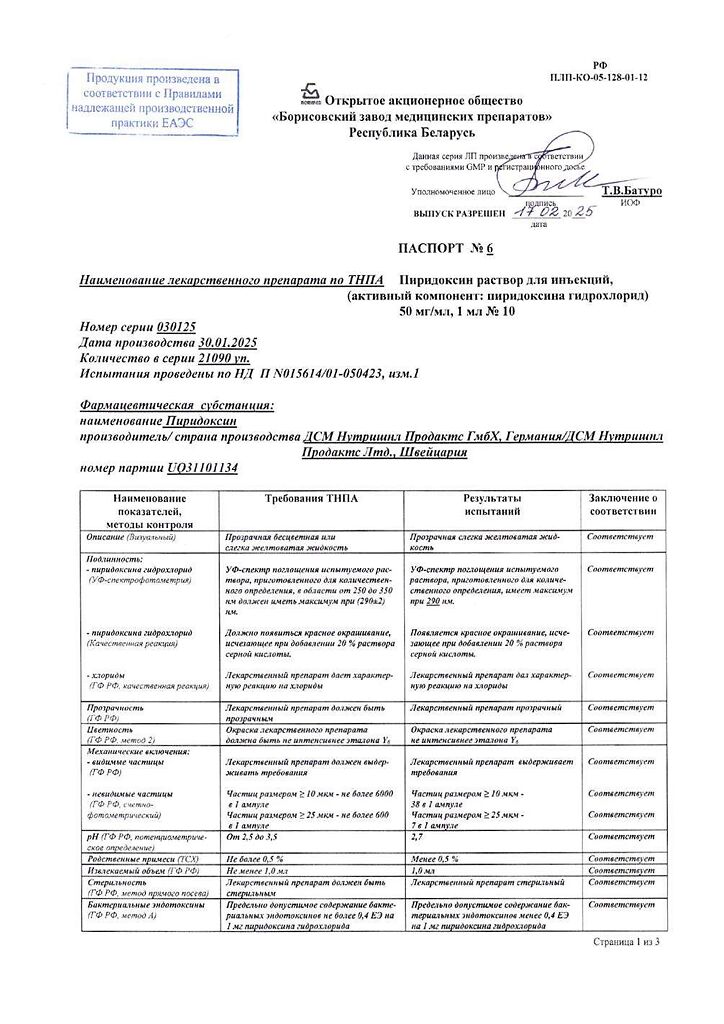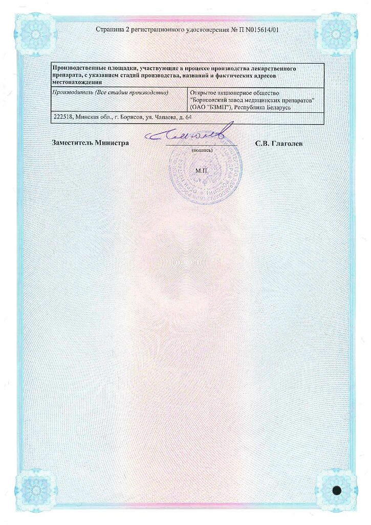 Производитель: Борисовский завод медицинских препаратов, Беларусь