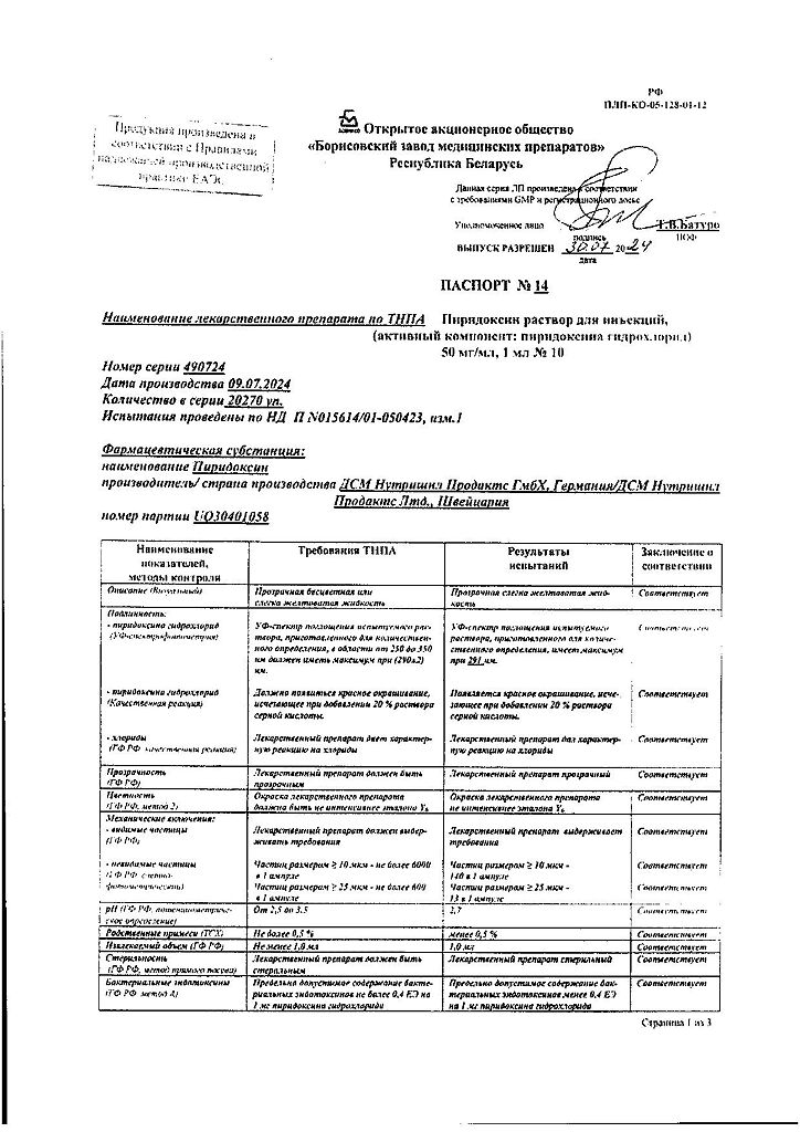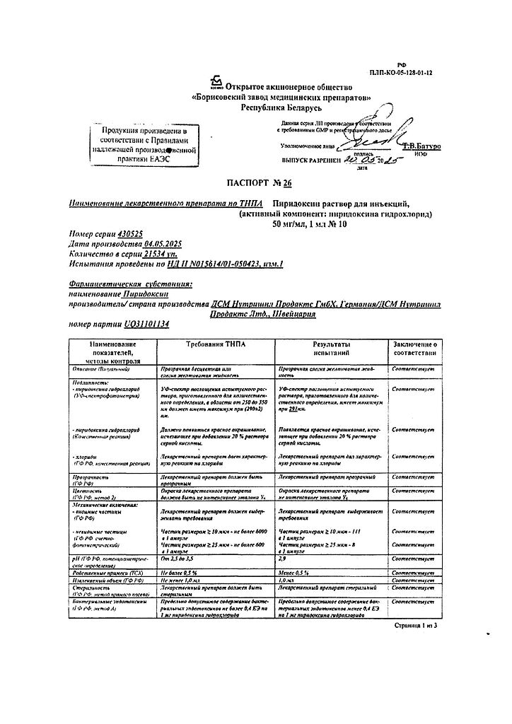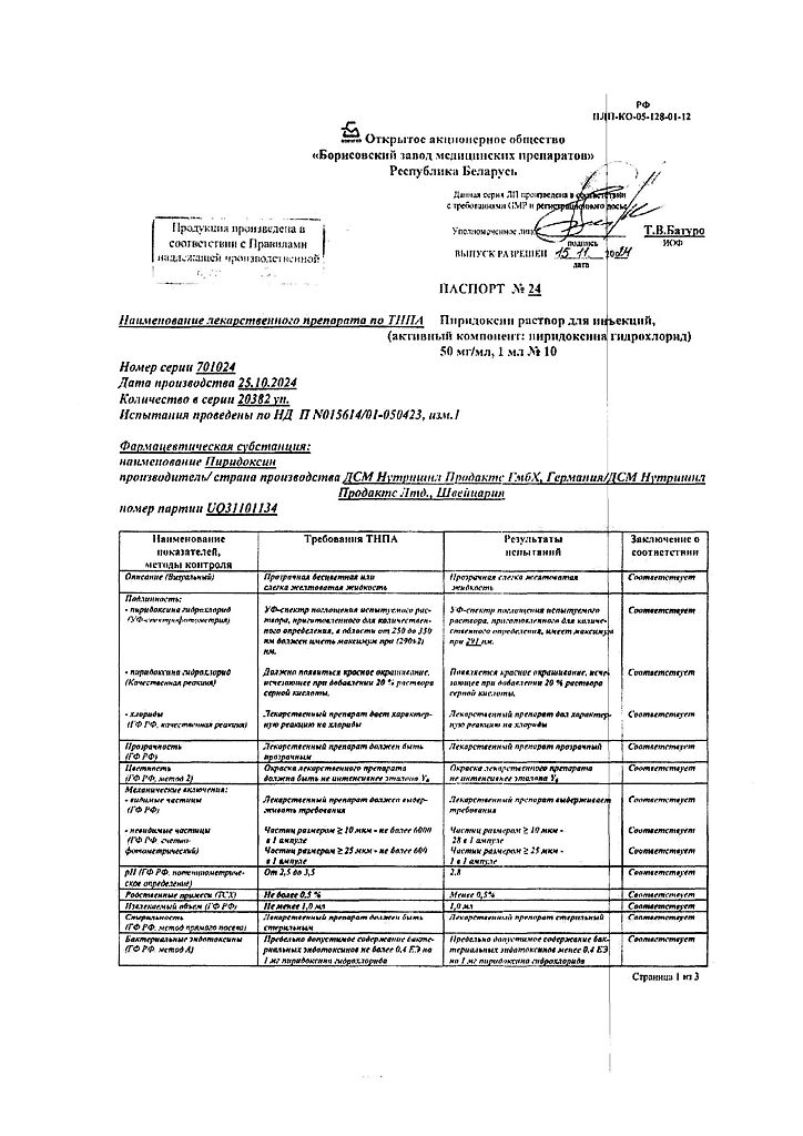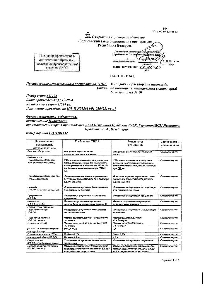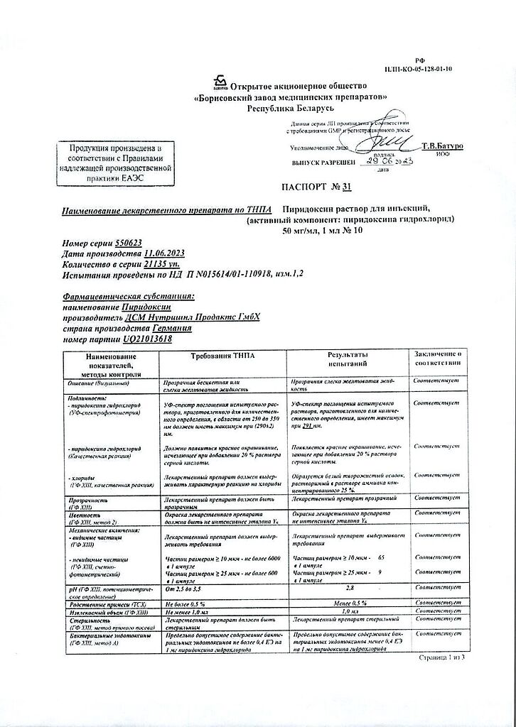 Производитель: Борисовский завод медицинских препаратов, Беларусь