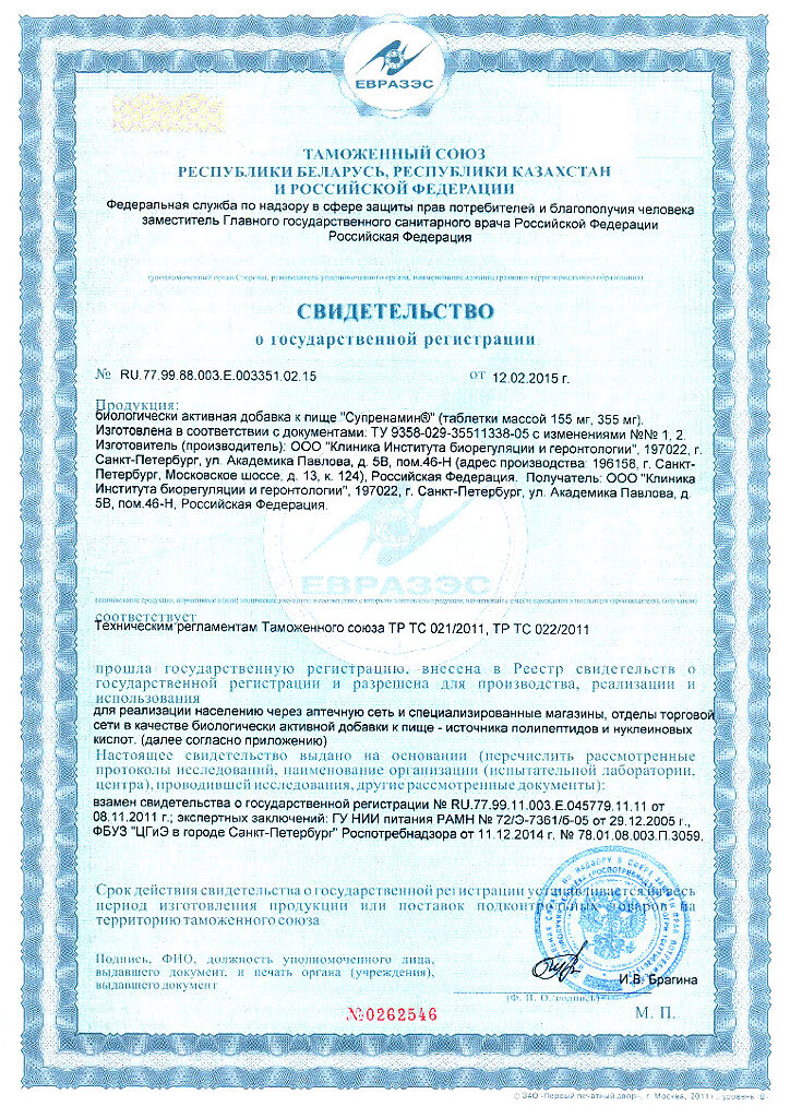 Производитель: Клиника Института биорегуляции и геронтологии, Россия