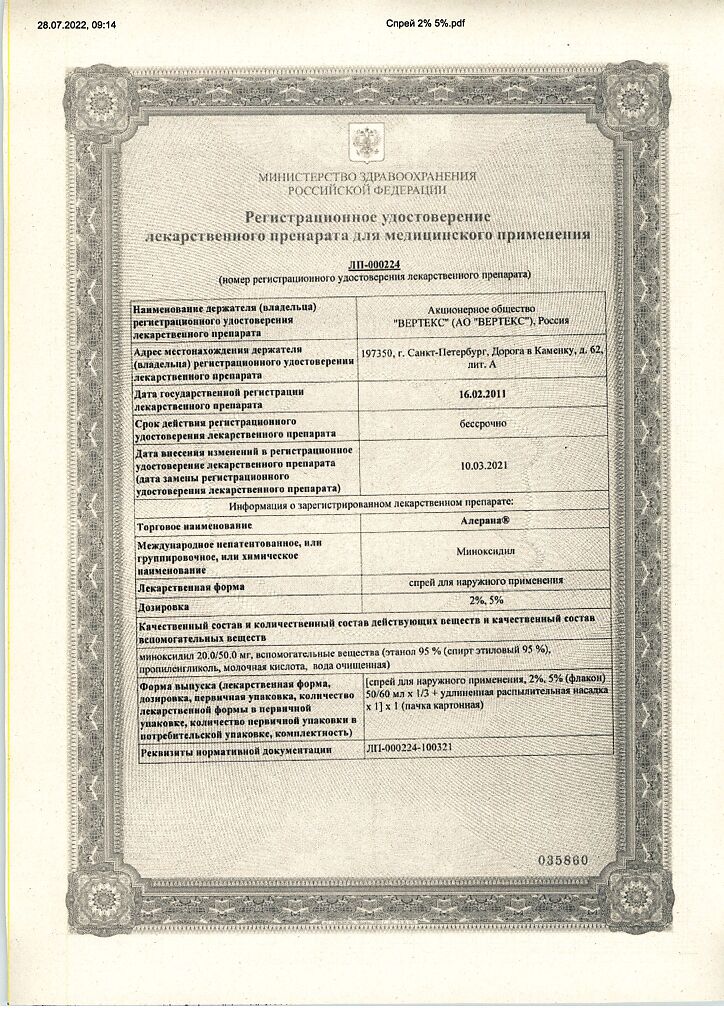 Действующее вещество: Миноксидил
