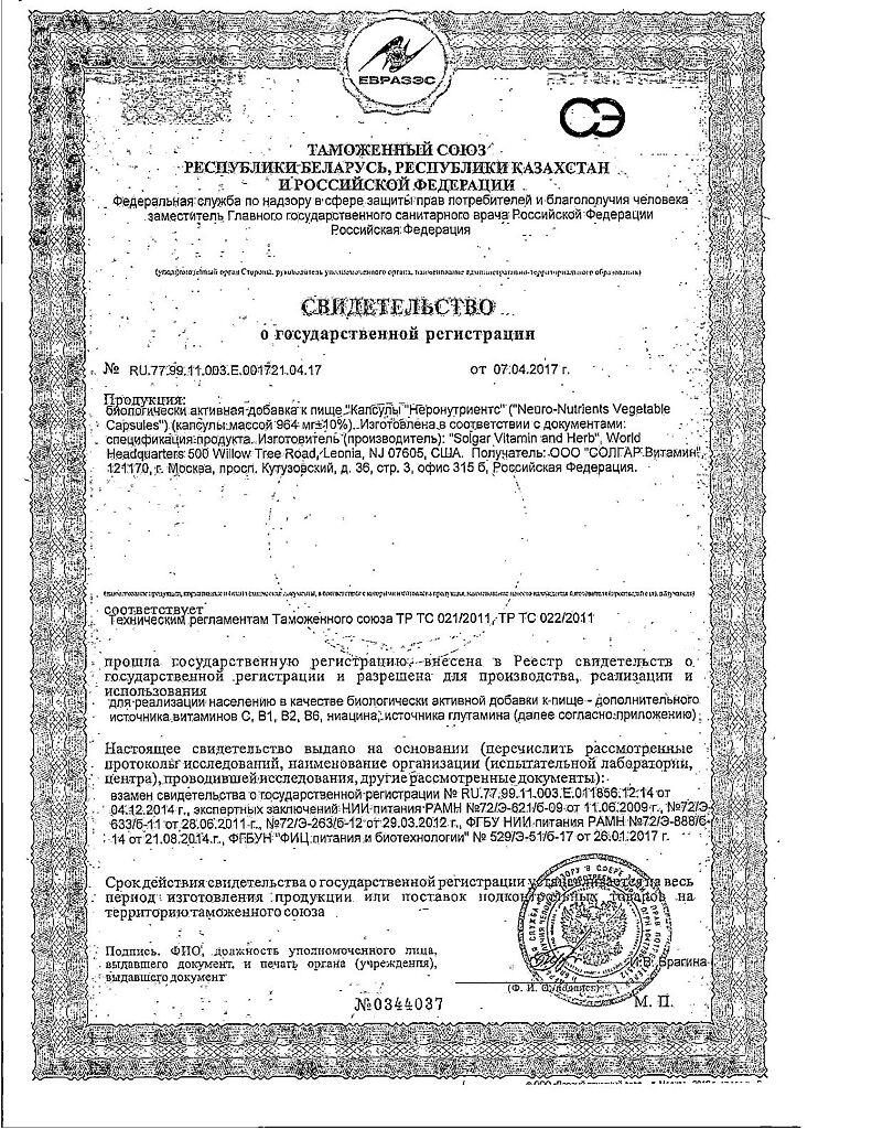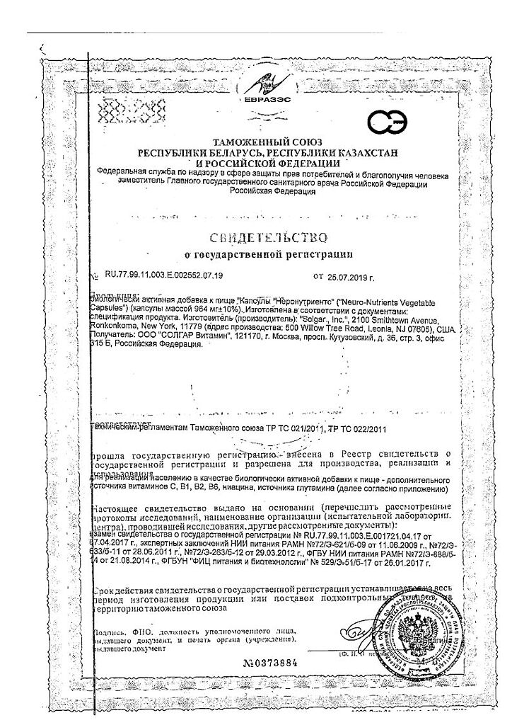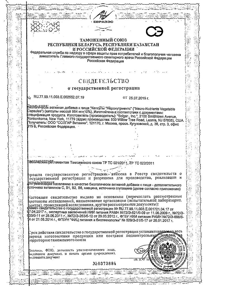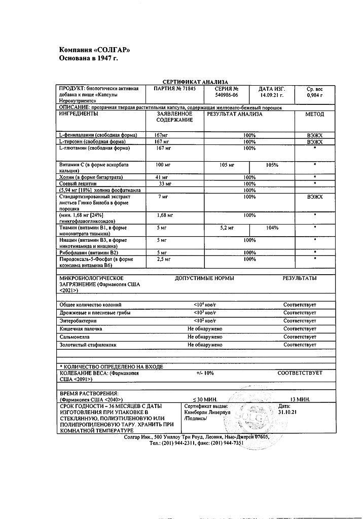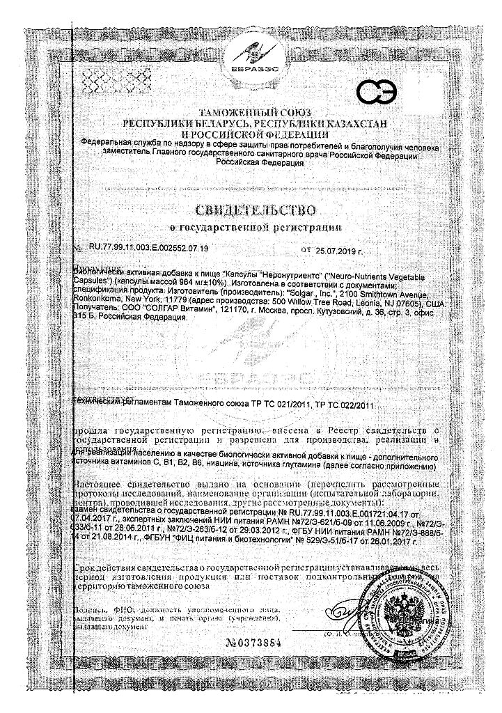 Все варианты Солгар Неронутриентс
