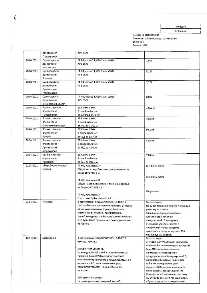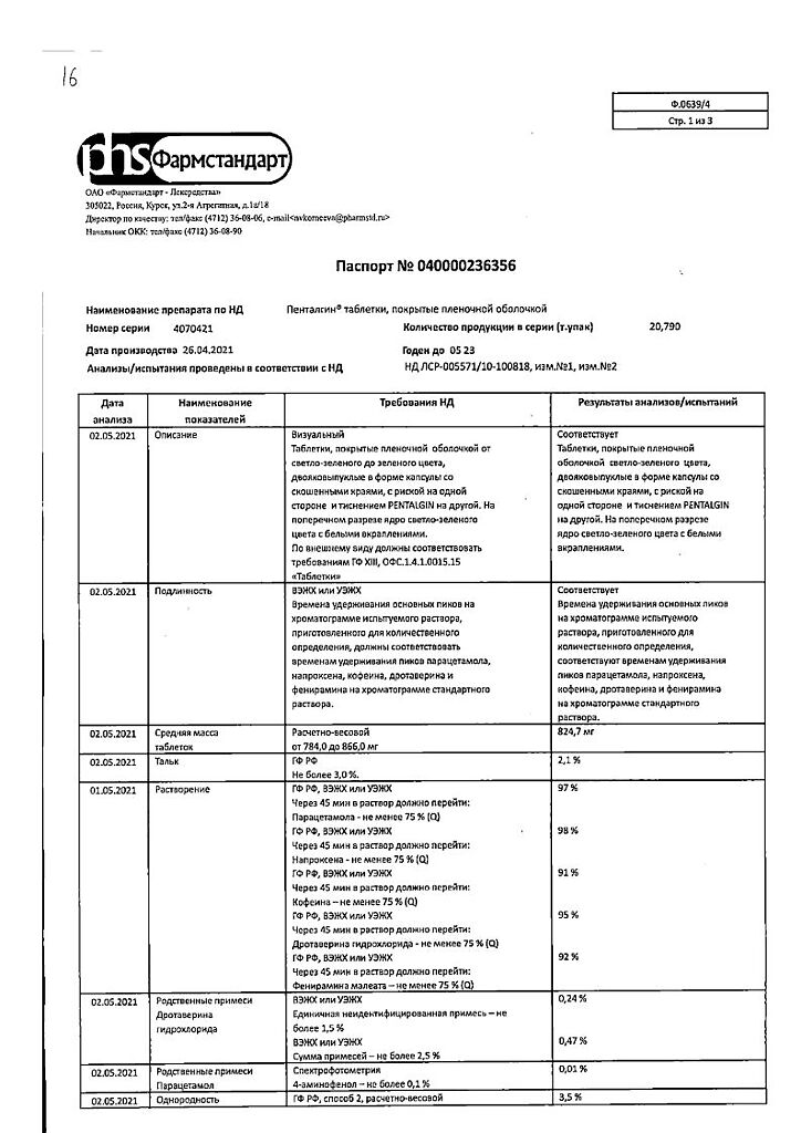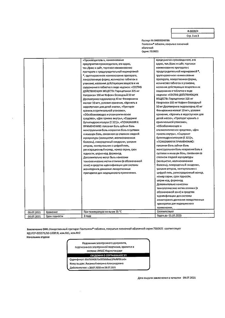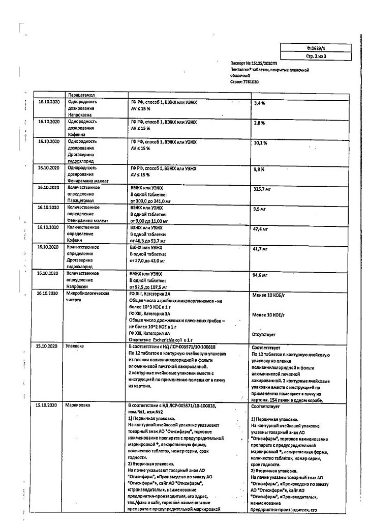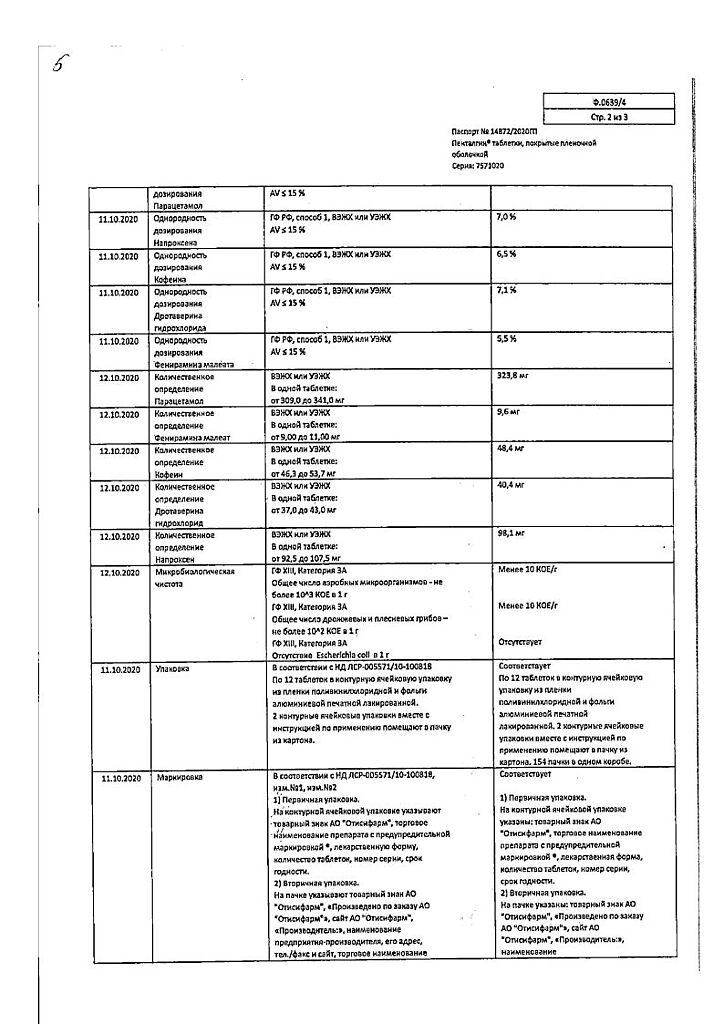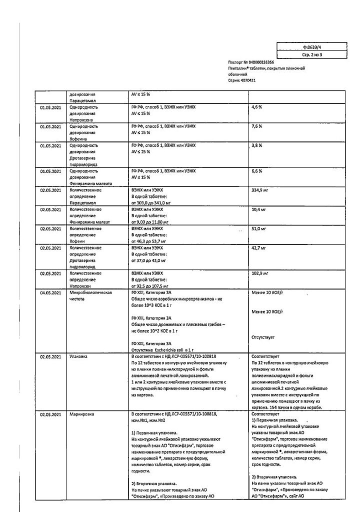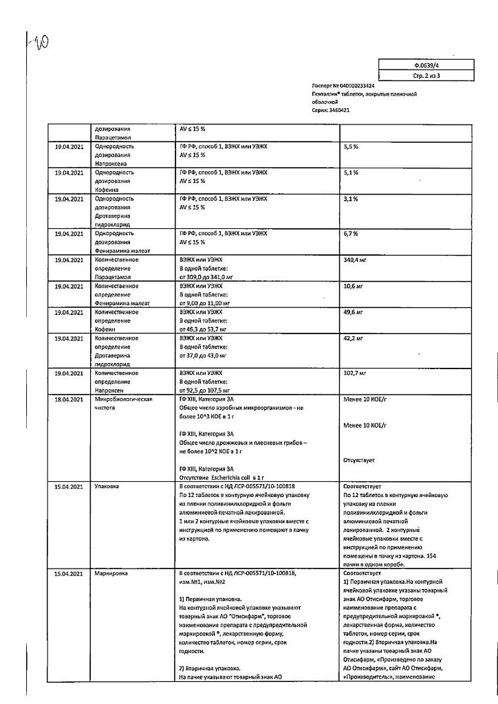 Действующее вещество: Парацетамол, Напроксен, Кофеин, Дротаверин, Фенирамин