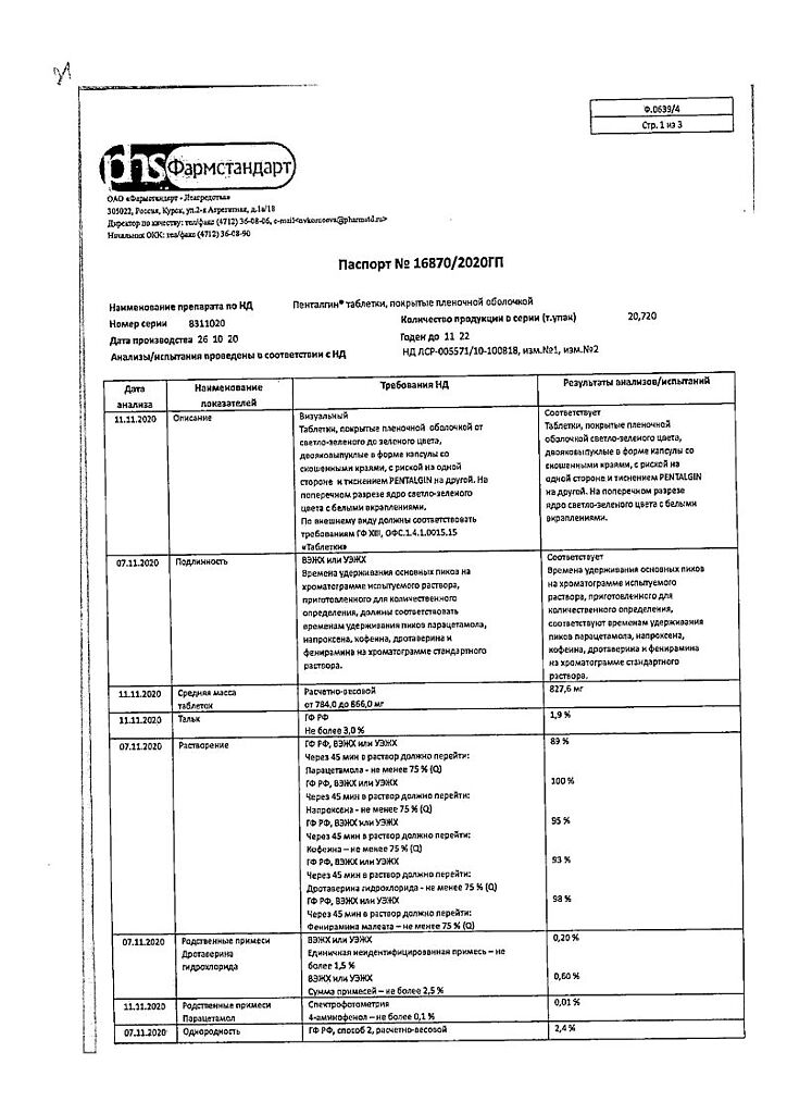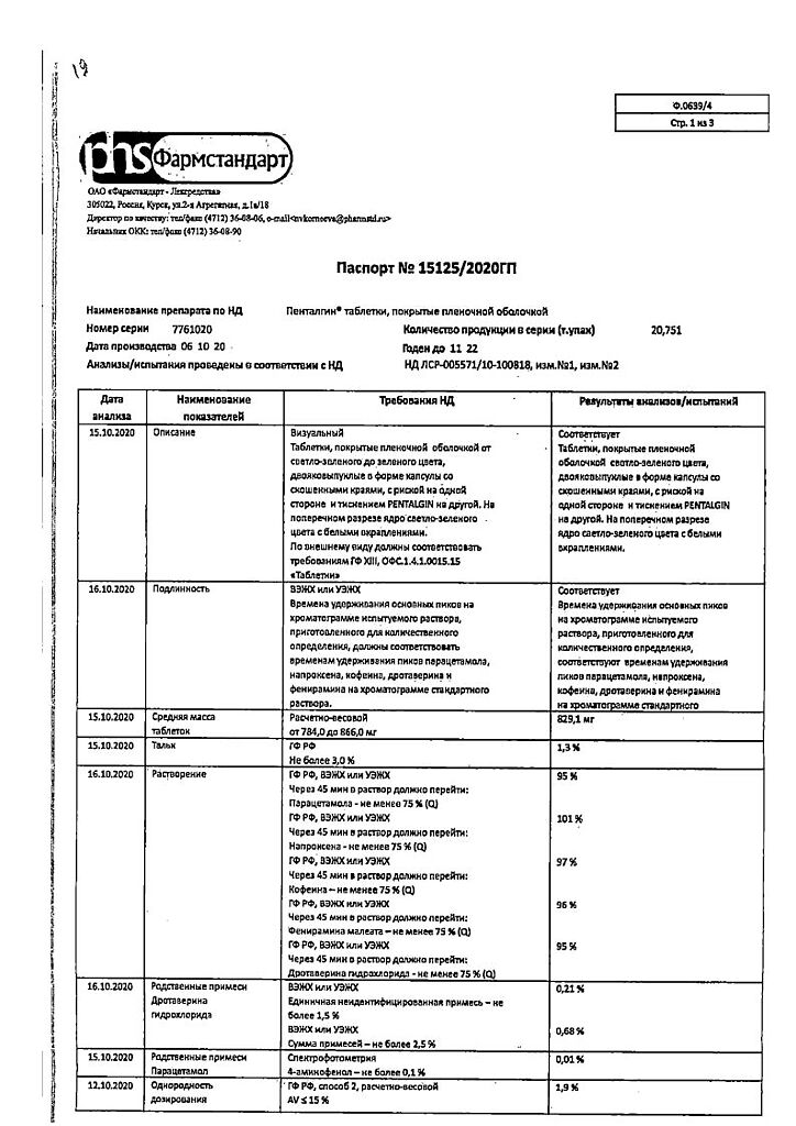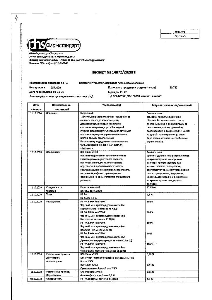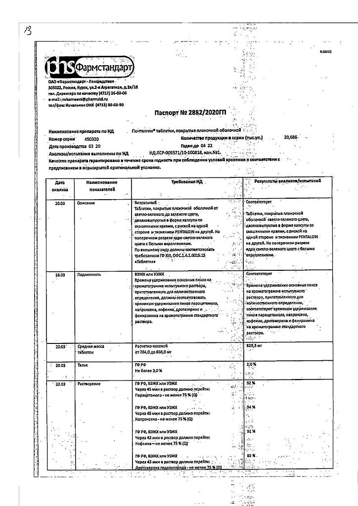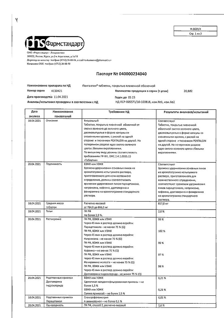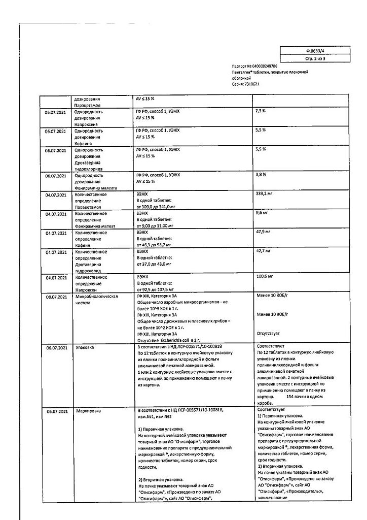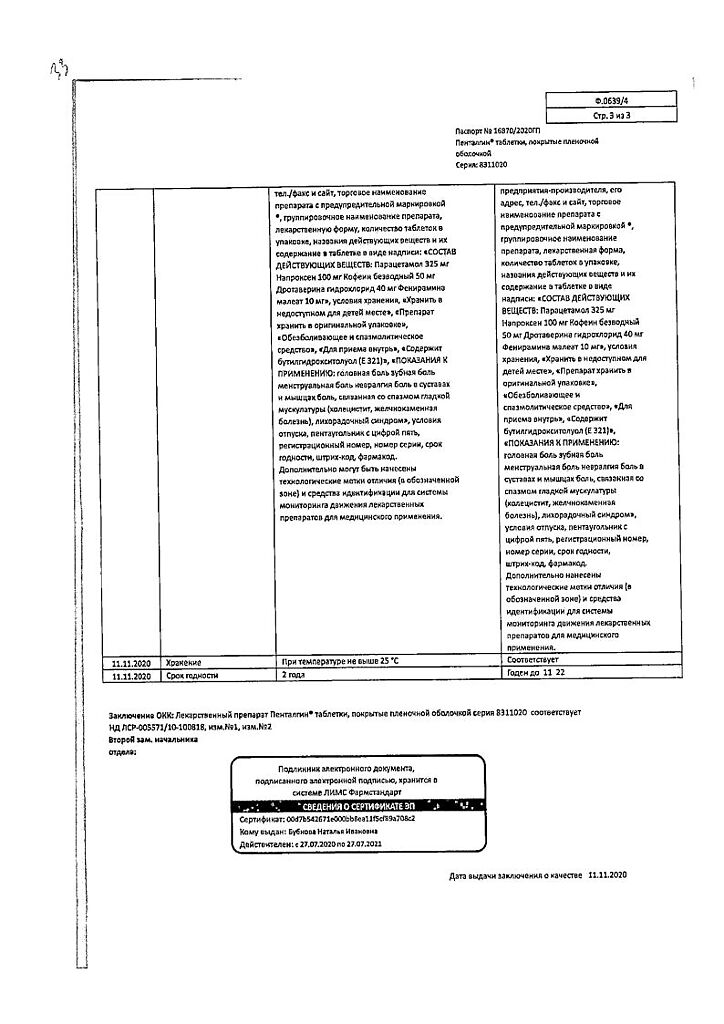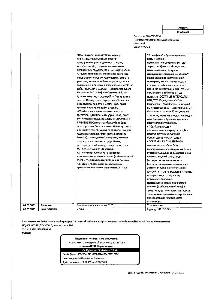 Действующее вещество: Парацетамол, Напроксен, Кофеин, Дротаверин, Фенирамин