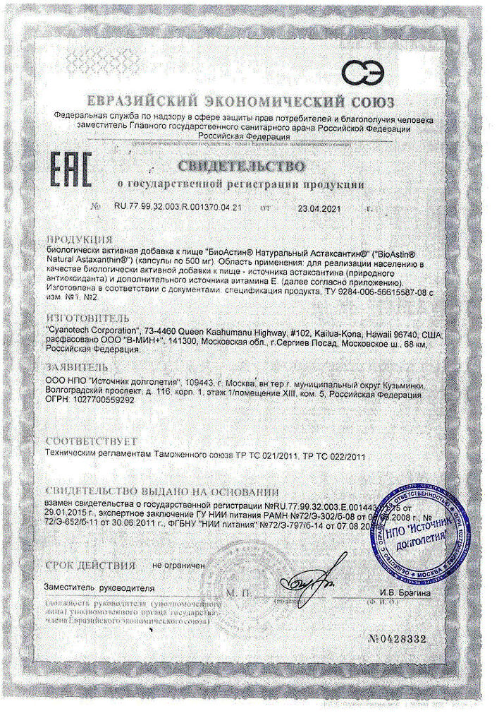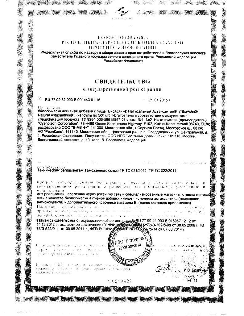 Производитель: Cyanotech Corporation/В-МИН+ ООО, США/Россия