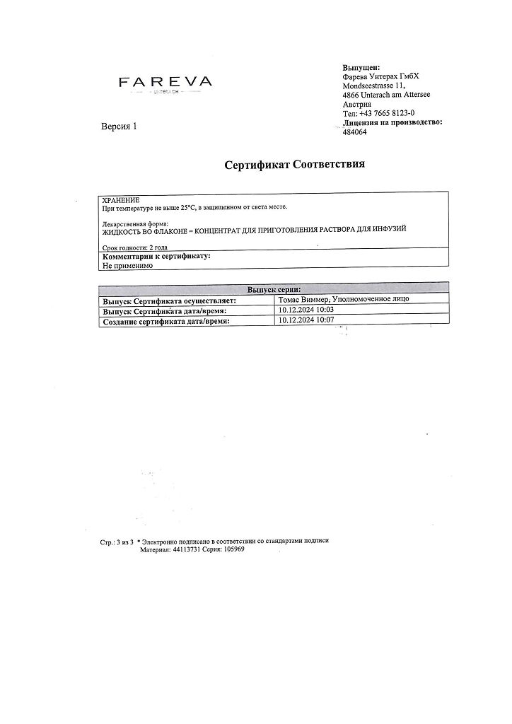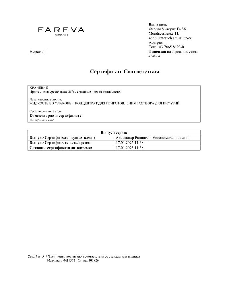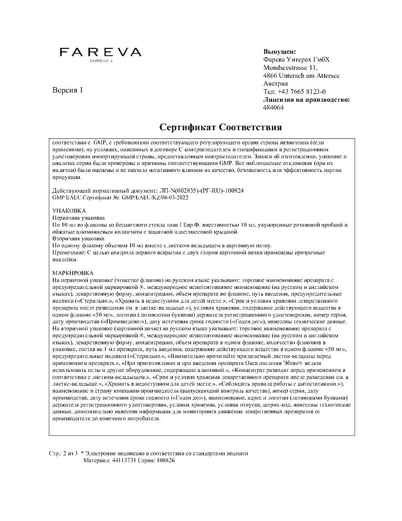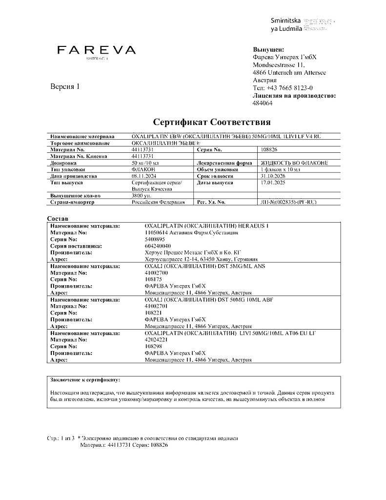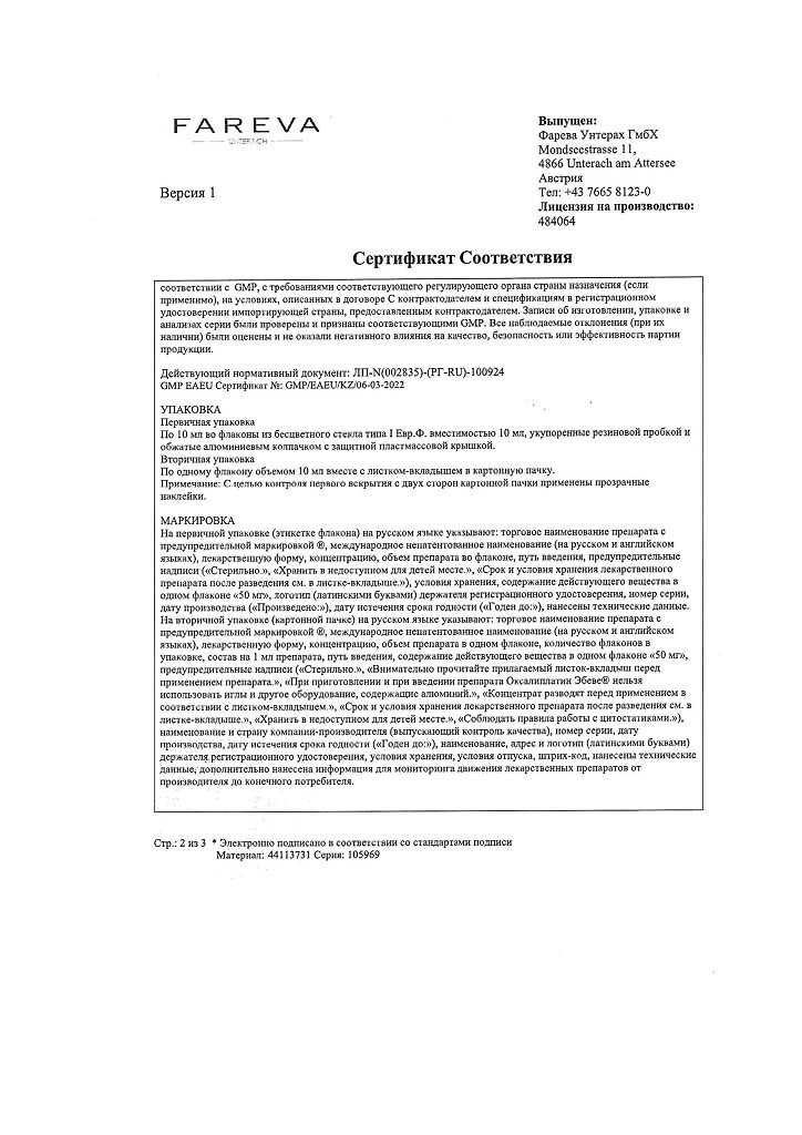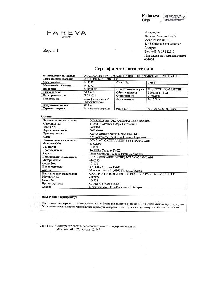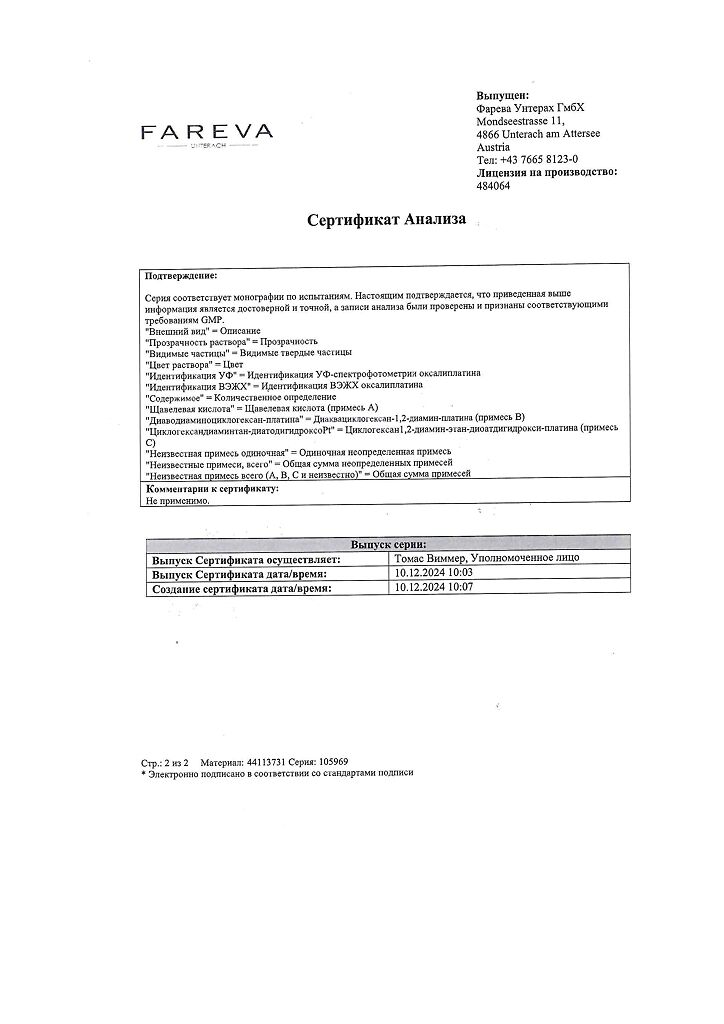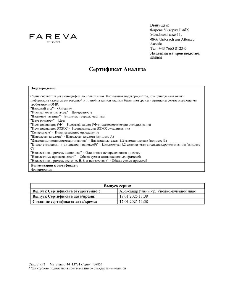 Действующее вещество: Оксалиплатин