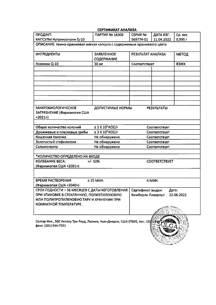 Производитель: Solgar Inc., США