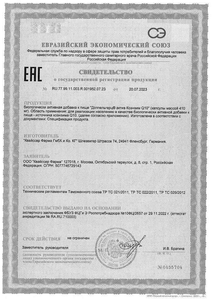 Документы Доппельгерц Актив Коэнзим Q10 капсулы массой 410 мг 30 шт
